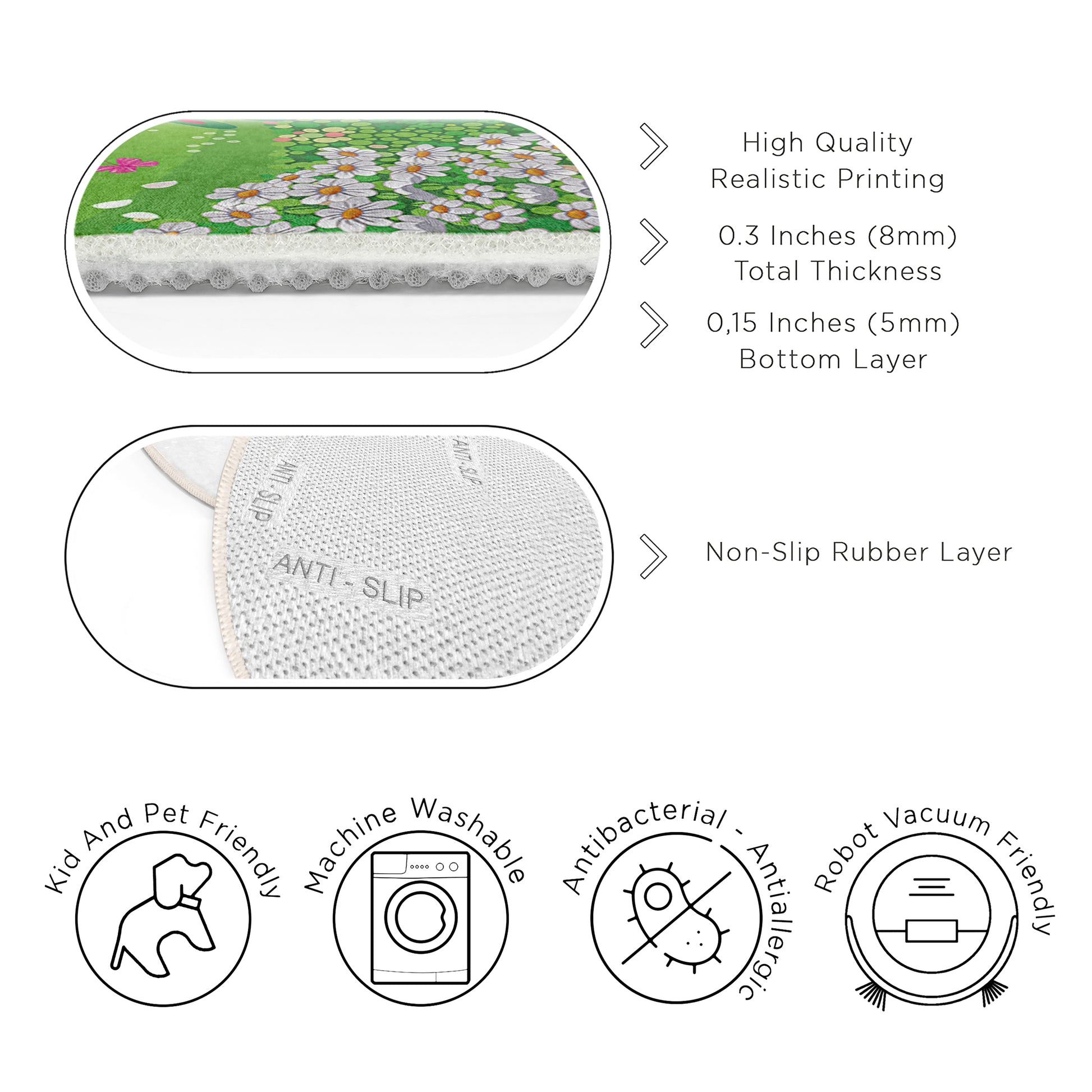 - Anti-Slip Backing: Designed with your child’s safety in mind, the rugs feature a durable anti-slip backing, preventing slips and falls, even on smooth surfaces.