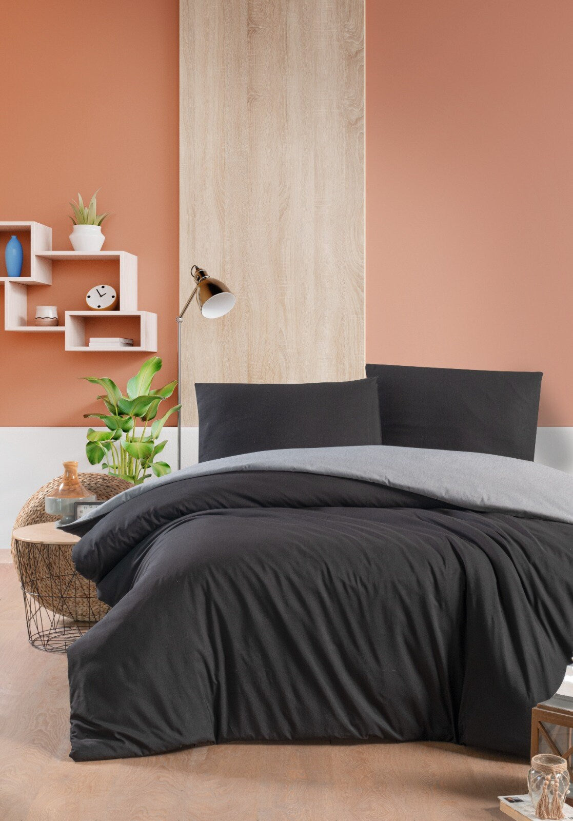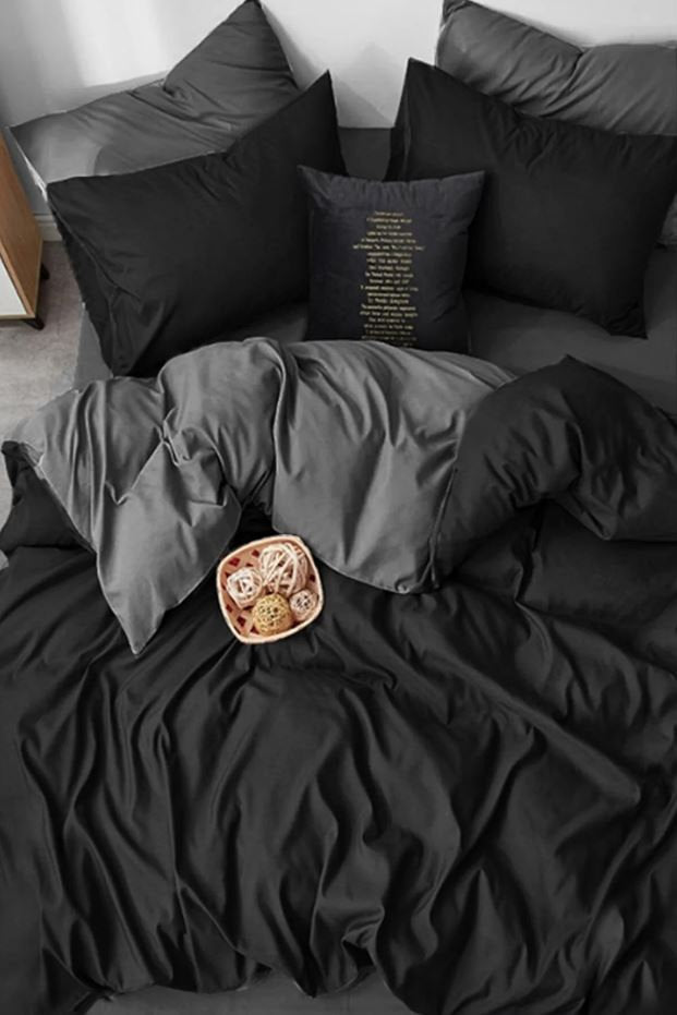 Black and Gray Modern Minimalist Bedding Set with Fitted Sheet - Sleek Bedroom Decor, Soft Fabric, Stylish Design Cotton Bedlinen Set