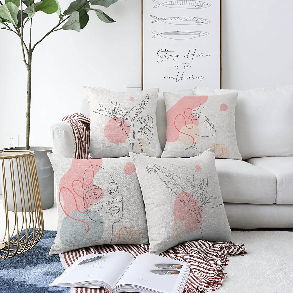 Chenille Throw Pillow Cover Drawing Art Throw Pillowcase Double Side Cushion Covers Minimalist Post Modern Pillow Cover 22x22 inch 4 Pieces