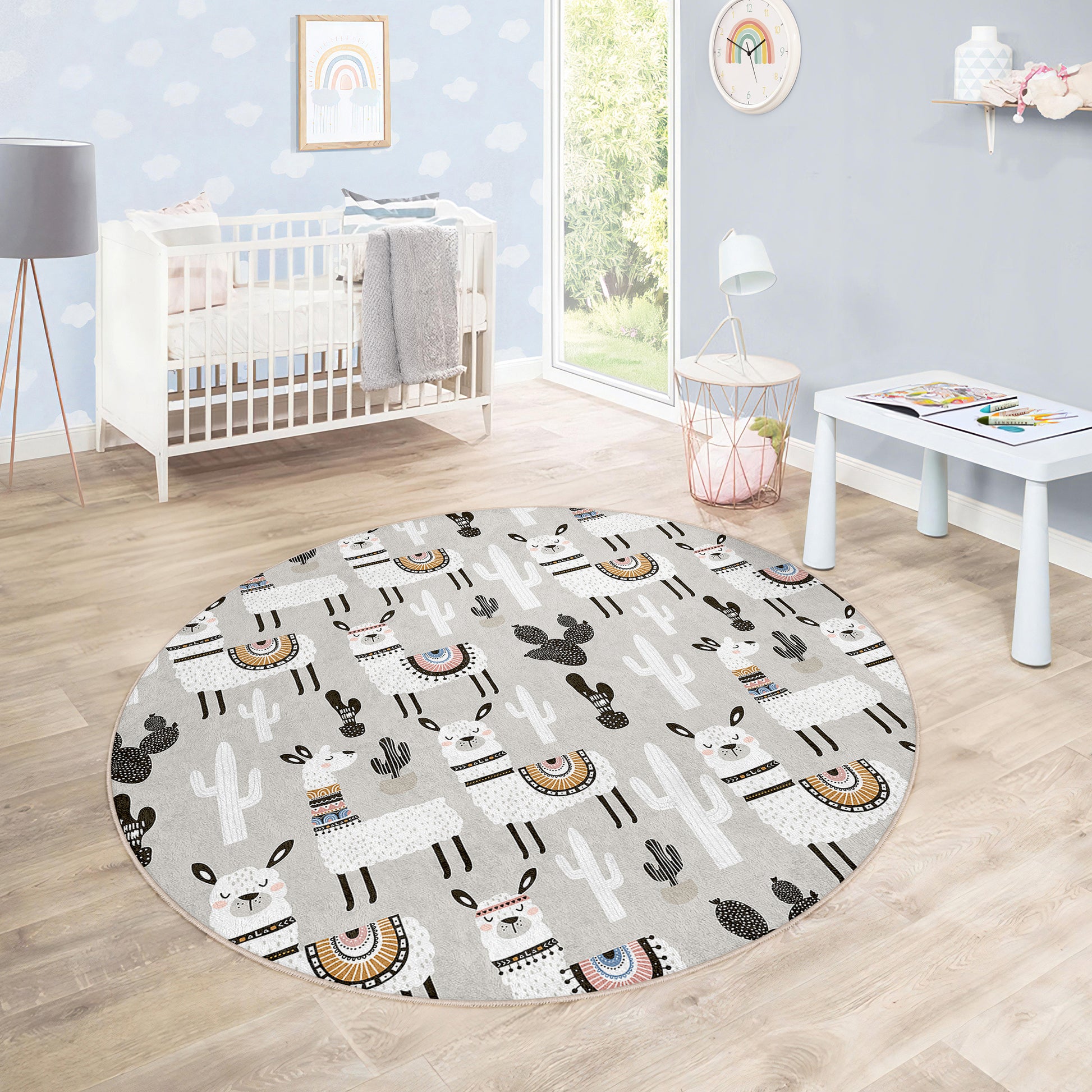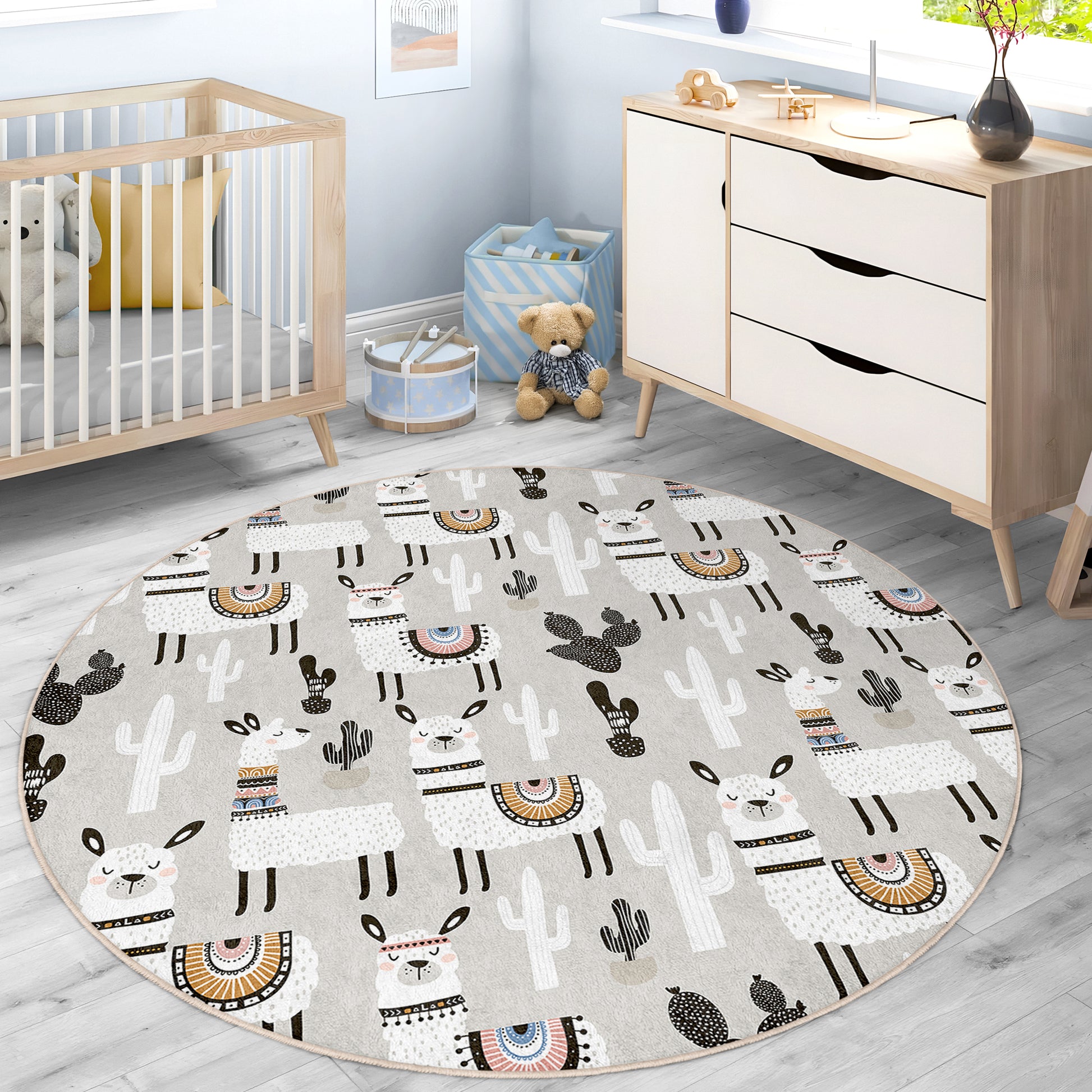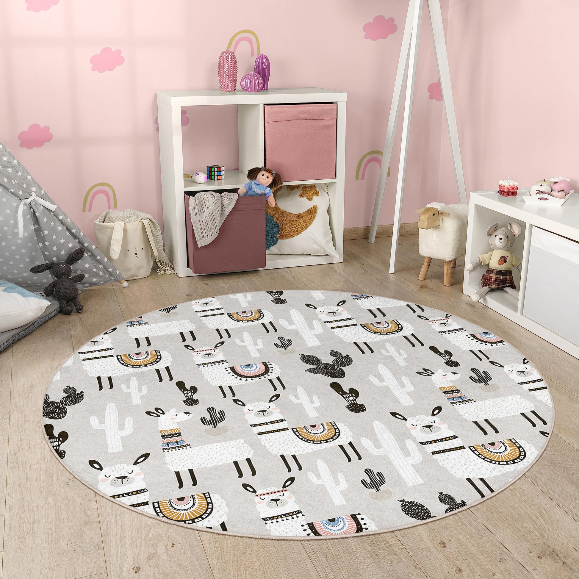 Cactus Rainbow and Lama Design Washable Anti-Slip Kids Round Rug Multifunction as Non Slip Play Mat - Perfect for Bedrooms, Playrooms & Nurseries - Durable, Safe, & Easy to Clean for Boys & Girls 314