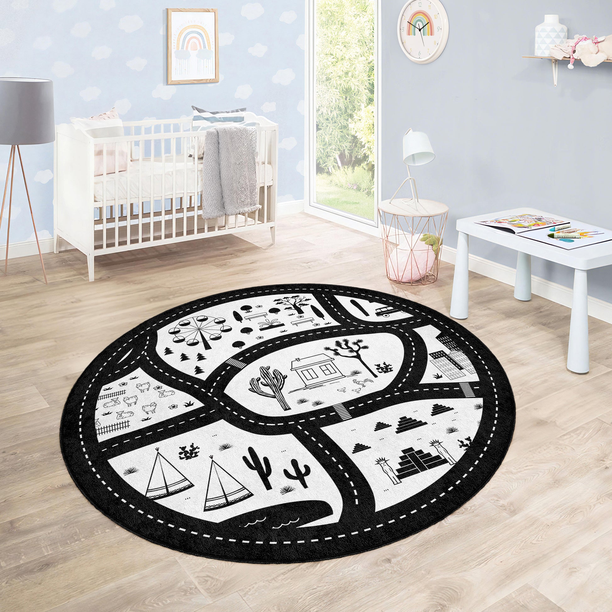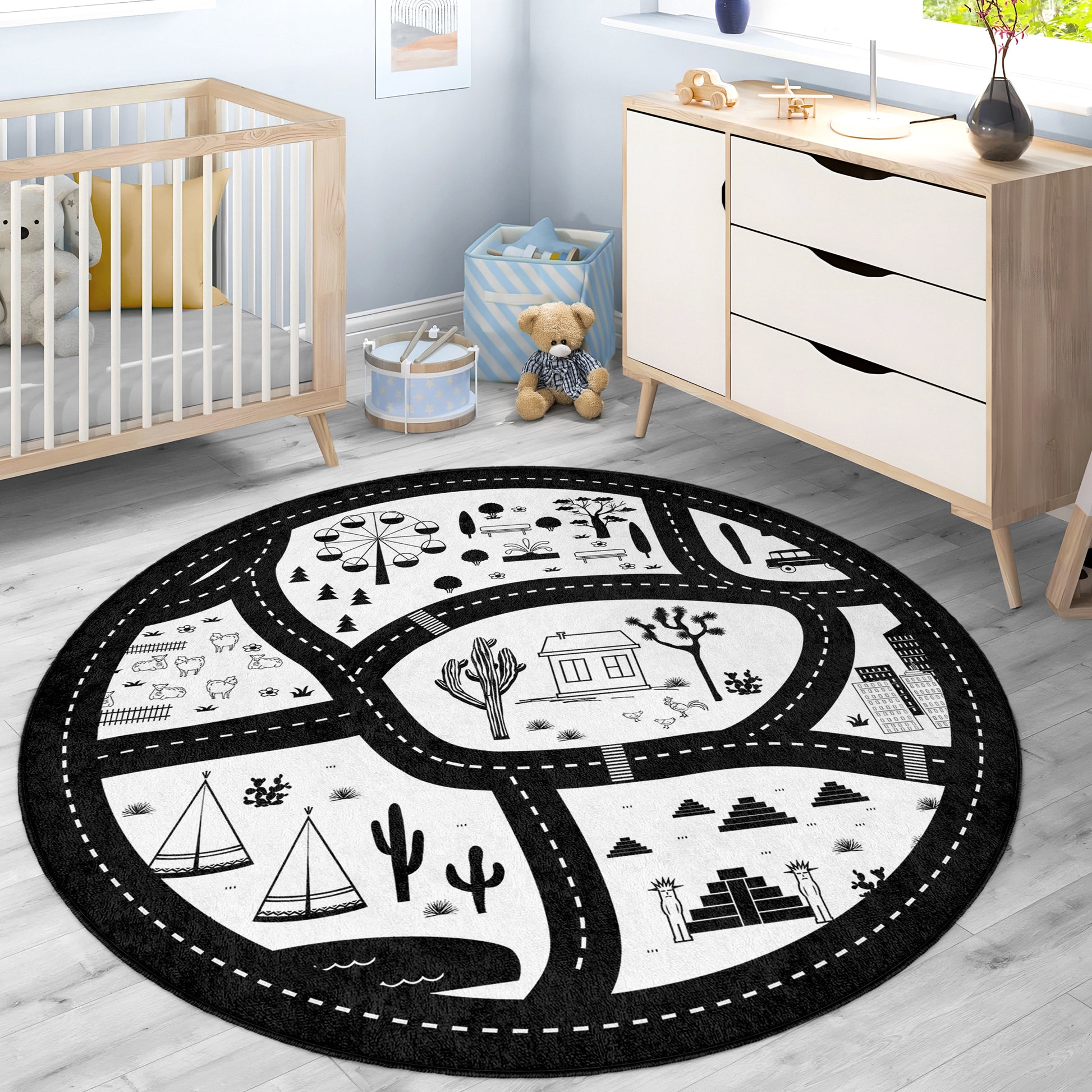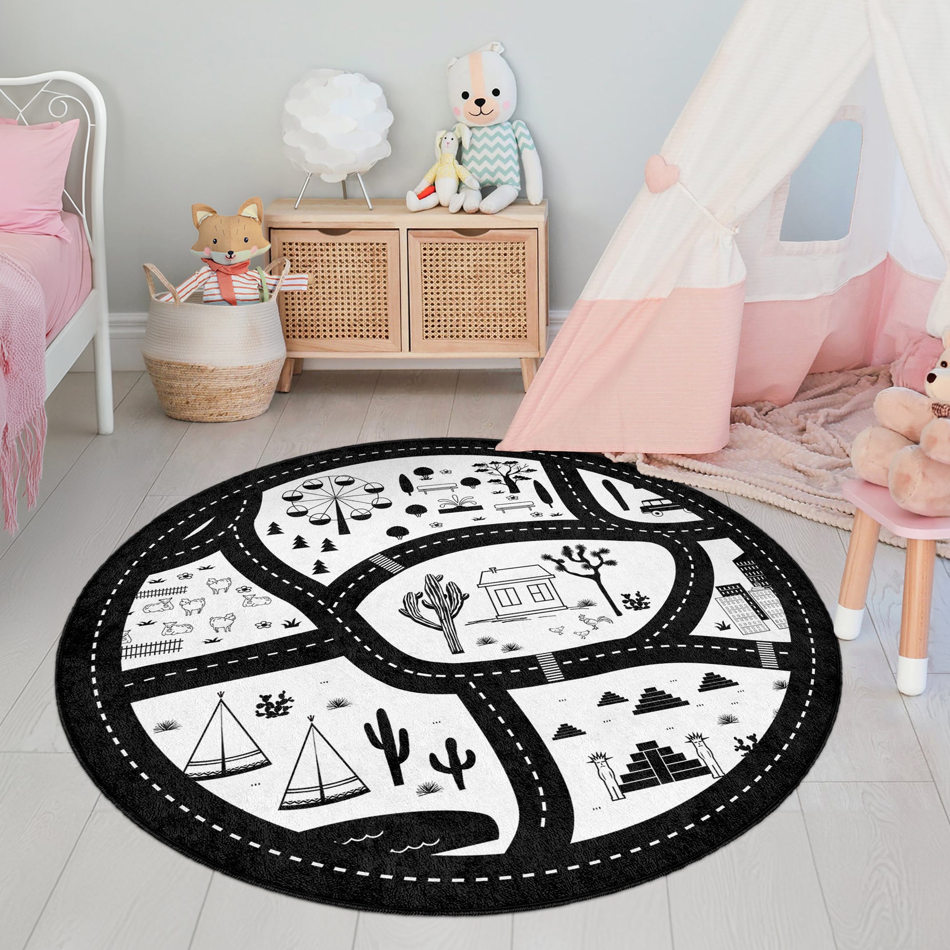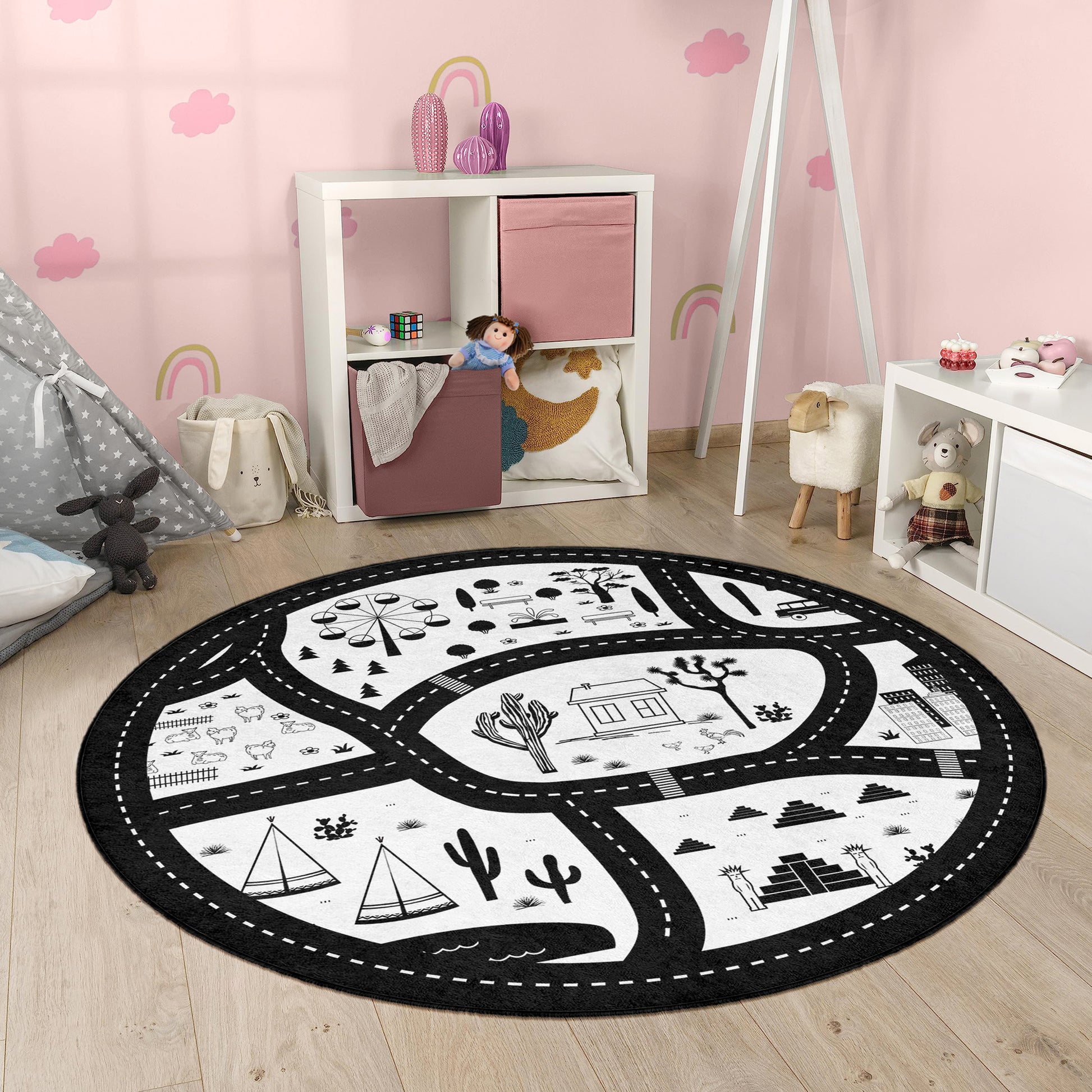 Black And White Minimalist Navy Design Washable Anti-Slip Kids Round Rug Multifunction as Non Slip Play Mat - Perfect for Bedrooms, Playrooms & Nurseries - Durable, Safe, & Easy to Clean for Boys & Girls 317