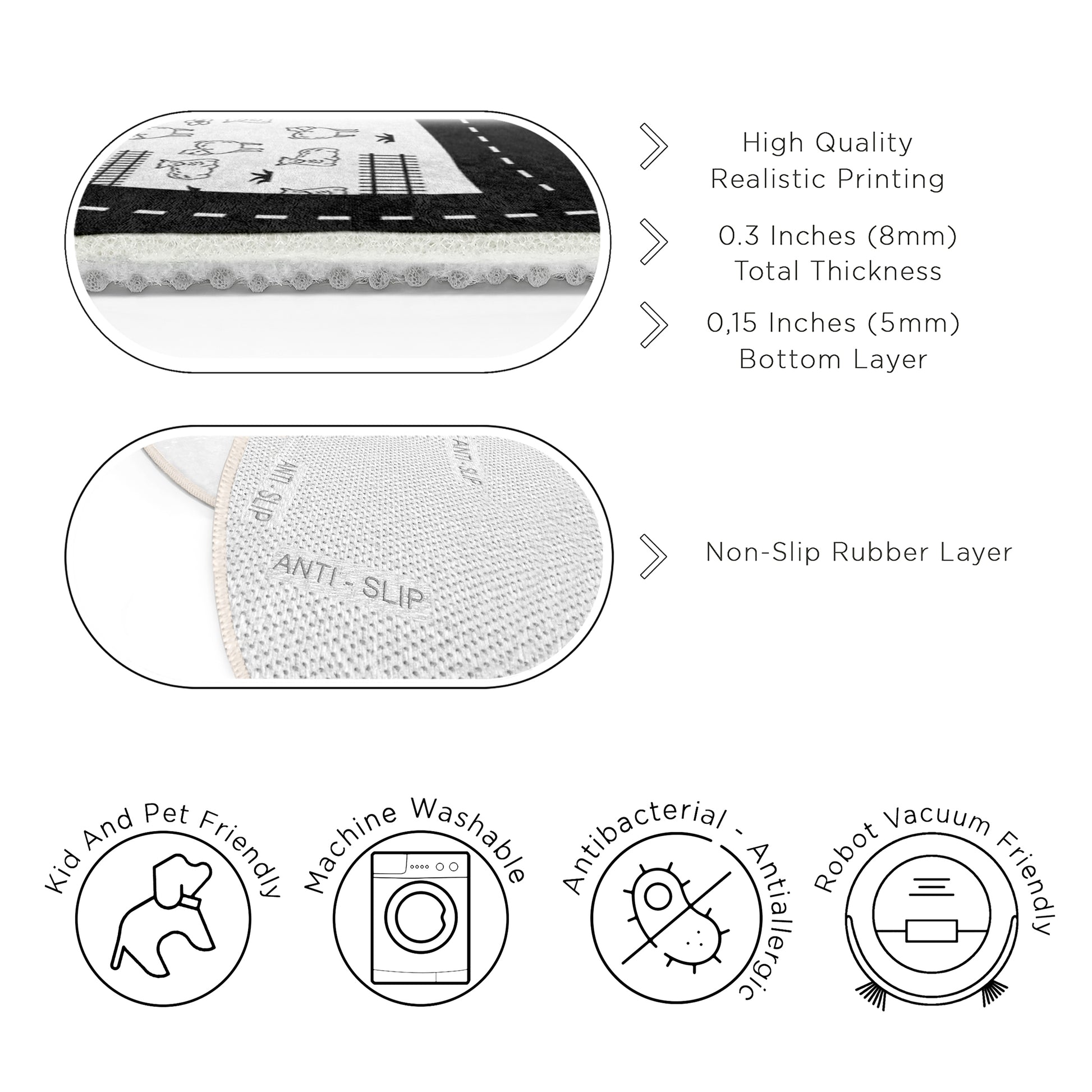 - Anti-Slip Backing: Designed with your child’s safety in mind, the rugs feature a durable anti-slip backing, preventing slips and falls, even on smooth surfaces.