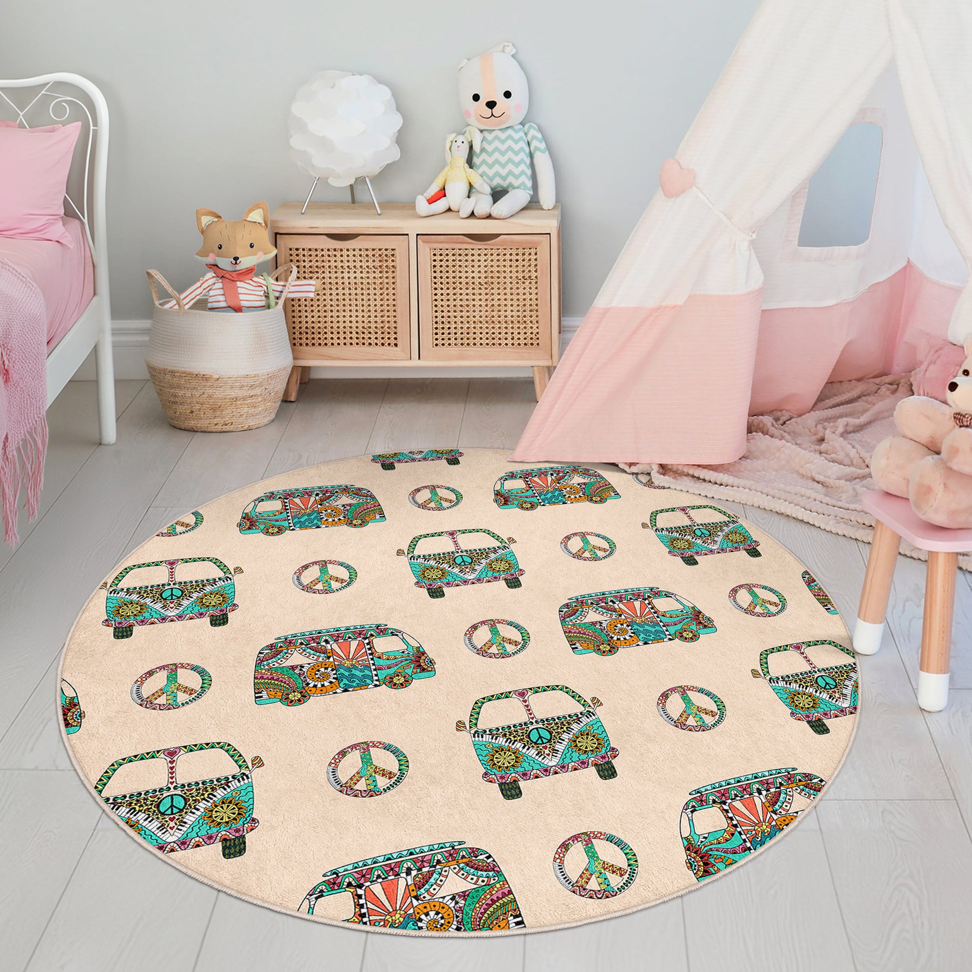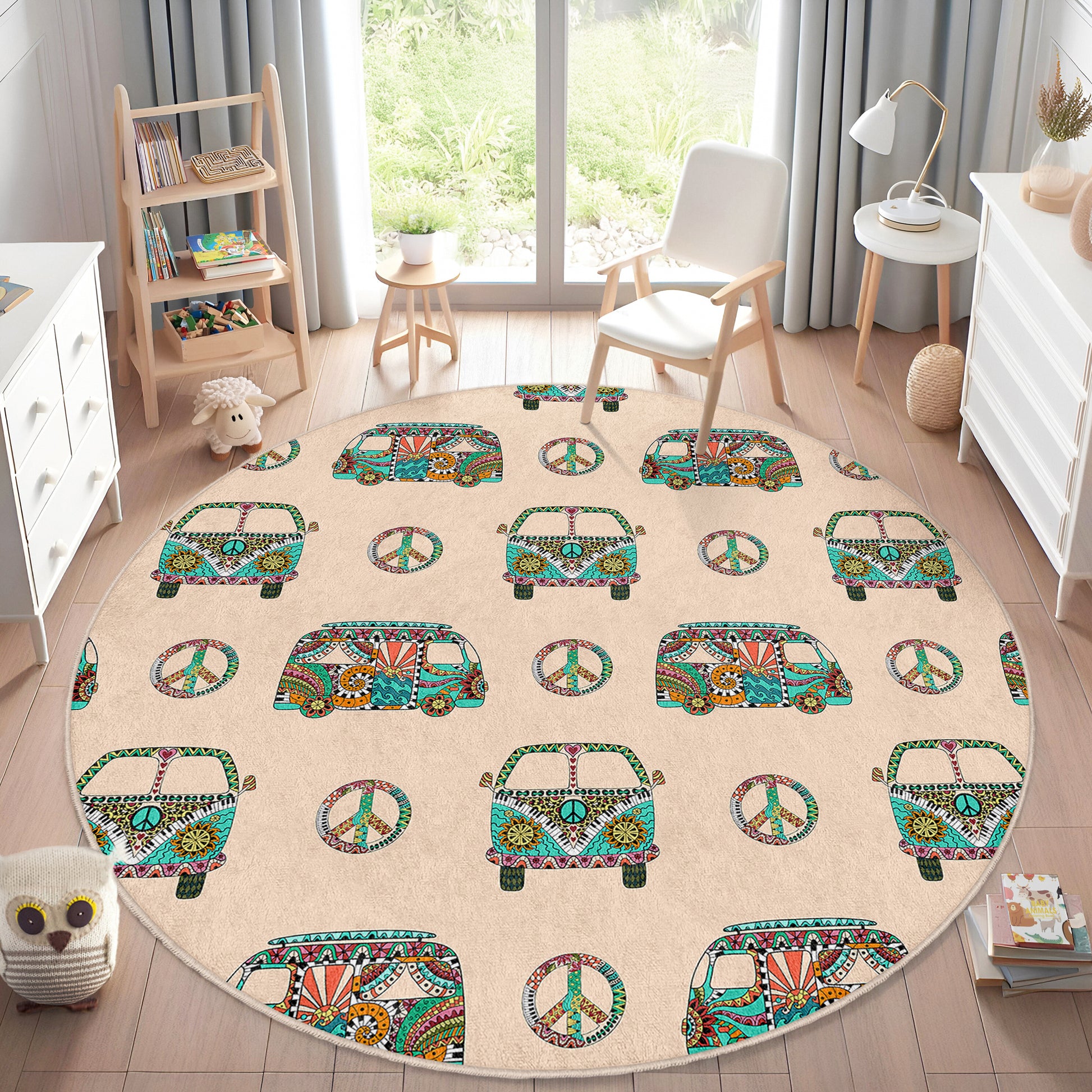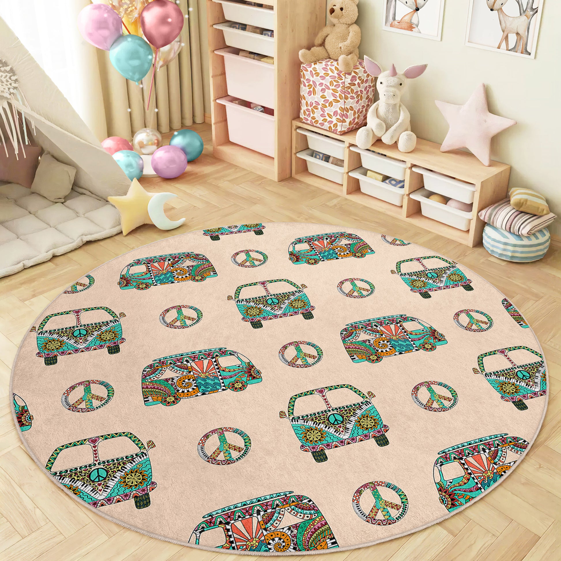 Cute Minivan Design Washable Anti-Slip Kids Rug Multifunction as Non Slip Play Mat - Perfect for Bedrooms, Playrooms & Nurseries - Durable, Safe, & Easy to Clean for Boys & Girls 304