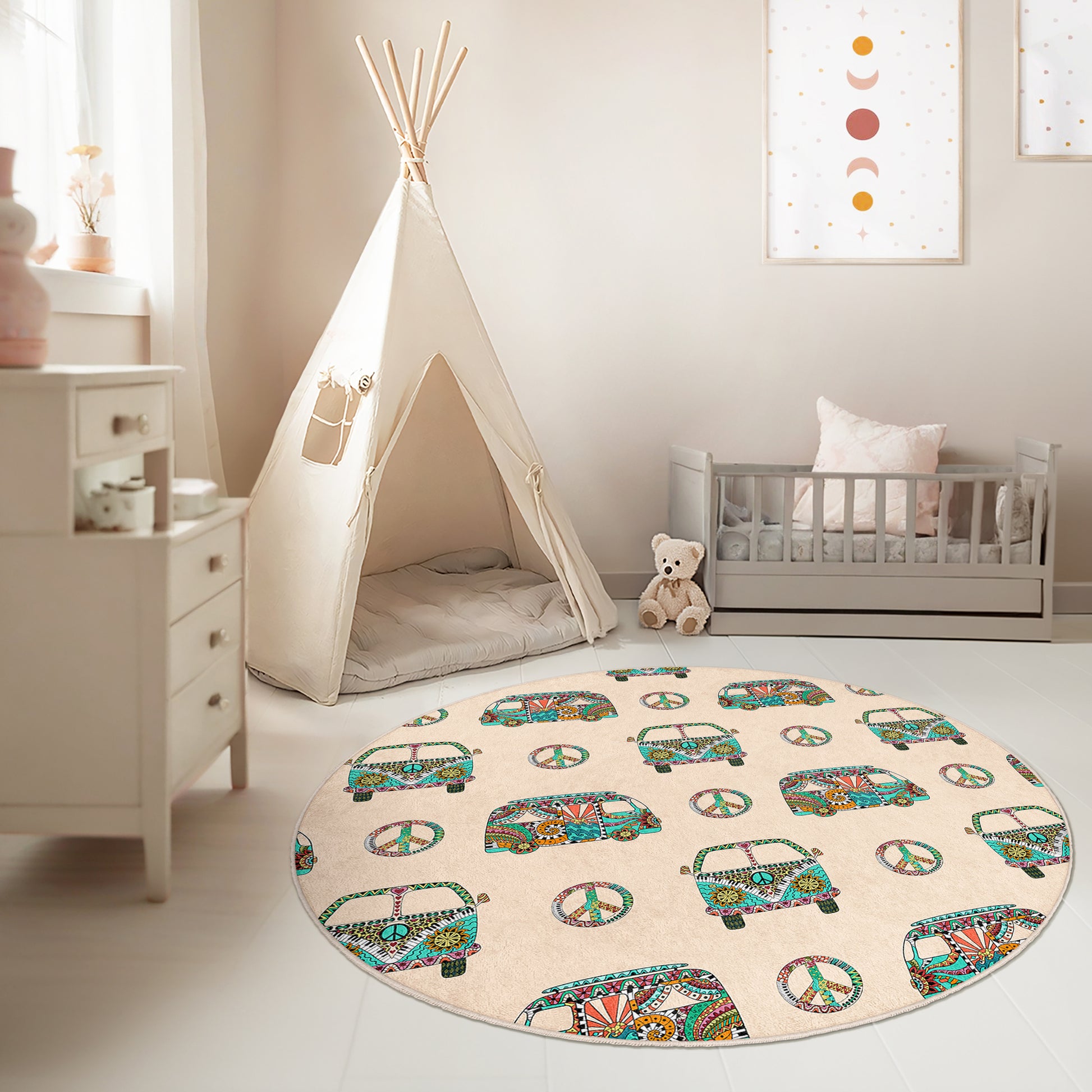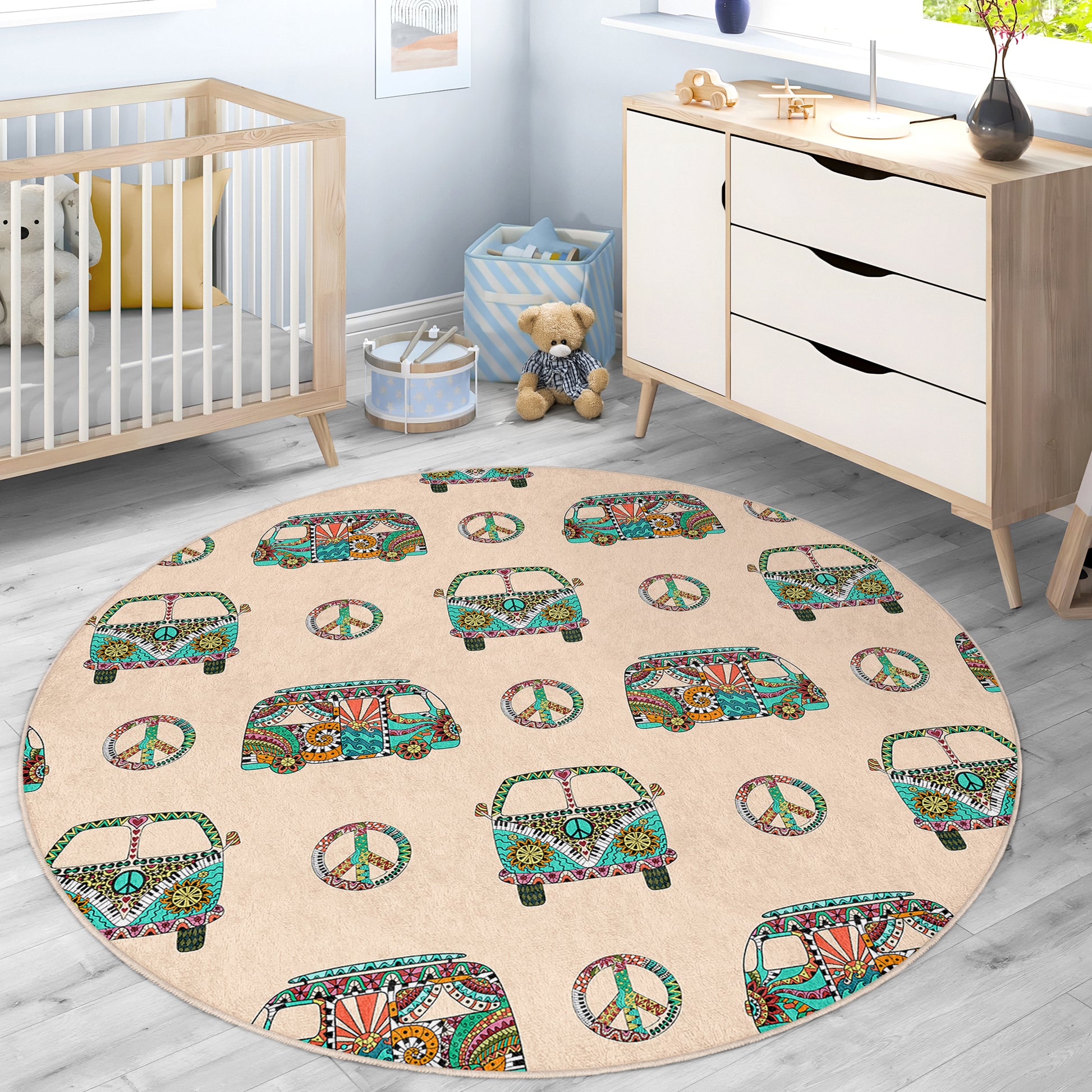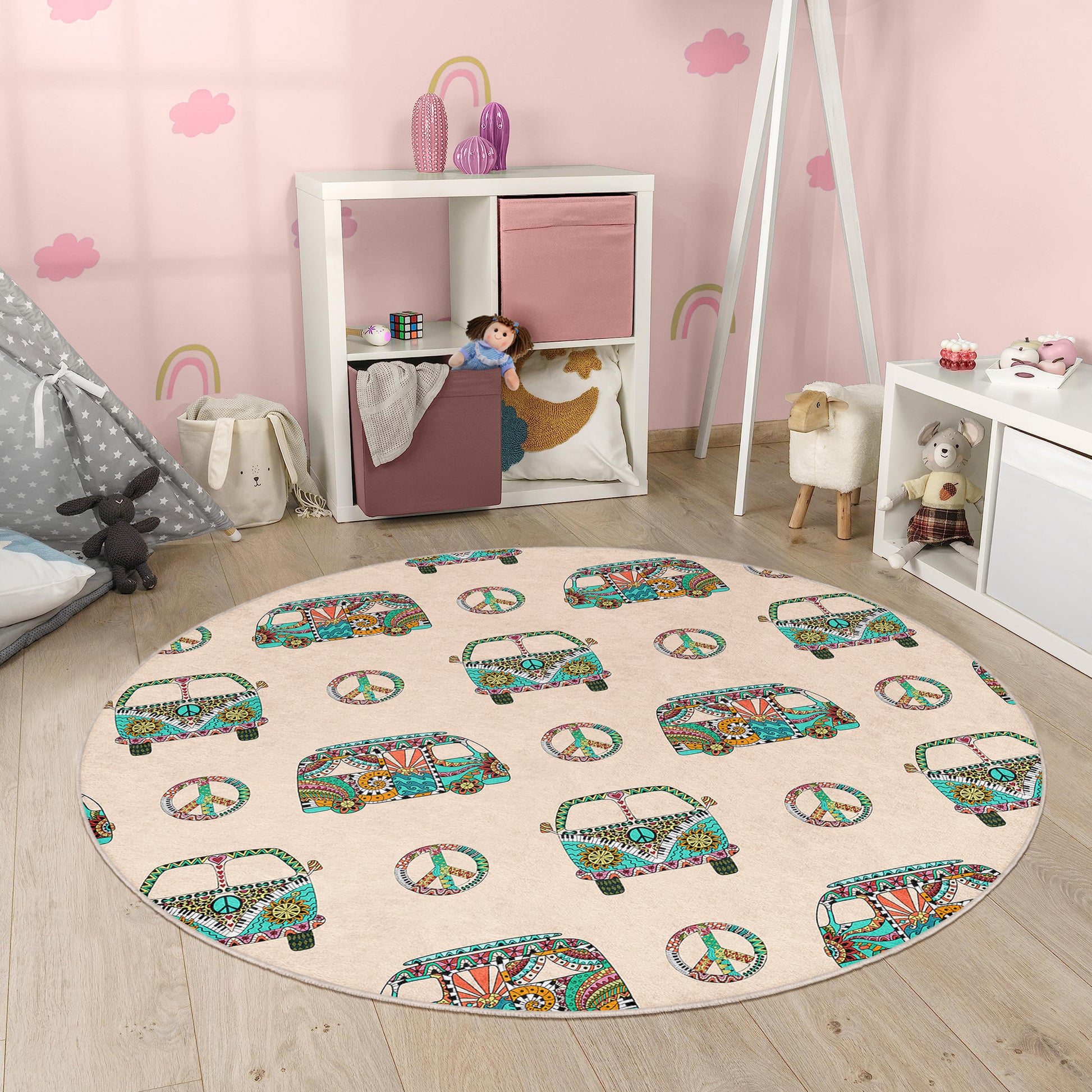 Cute Minivan Design Washable Anti-Slip Kids Rug Multifunction as Non Slip Play Mat - Perfect for Bedrooms, Playrooms & Nurseries - Durable, Safe, & Easy to Clean for Boys & Girls 304