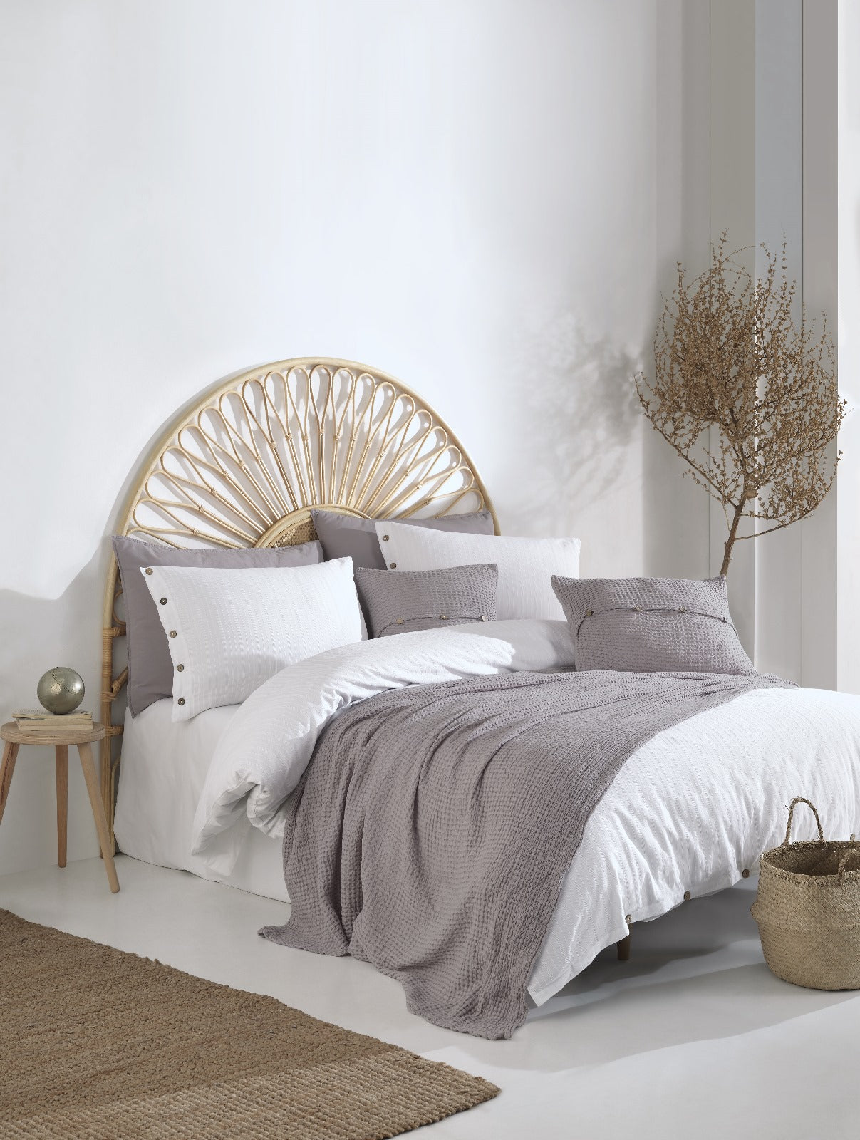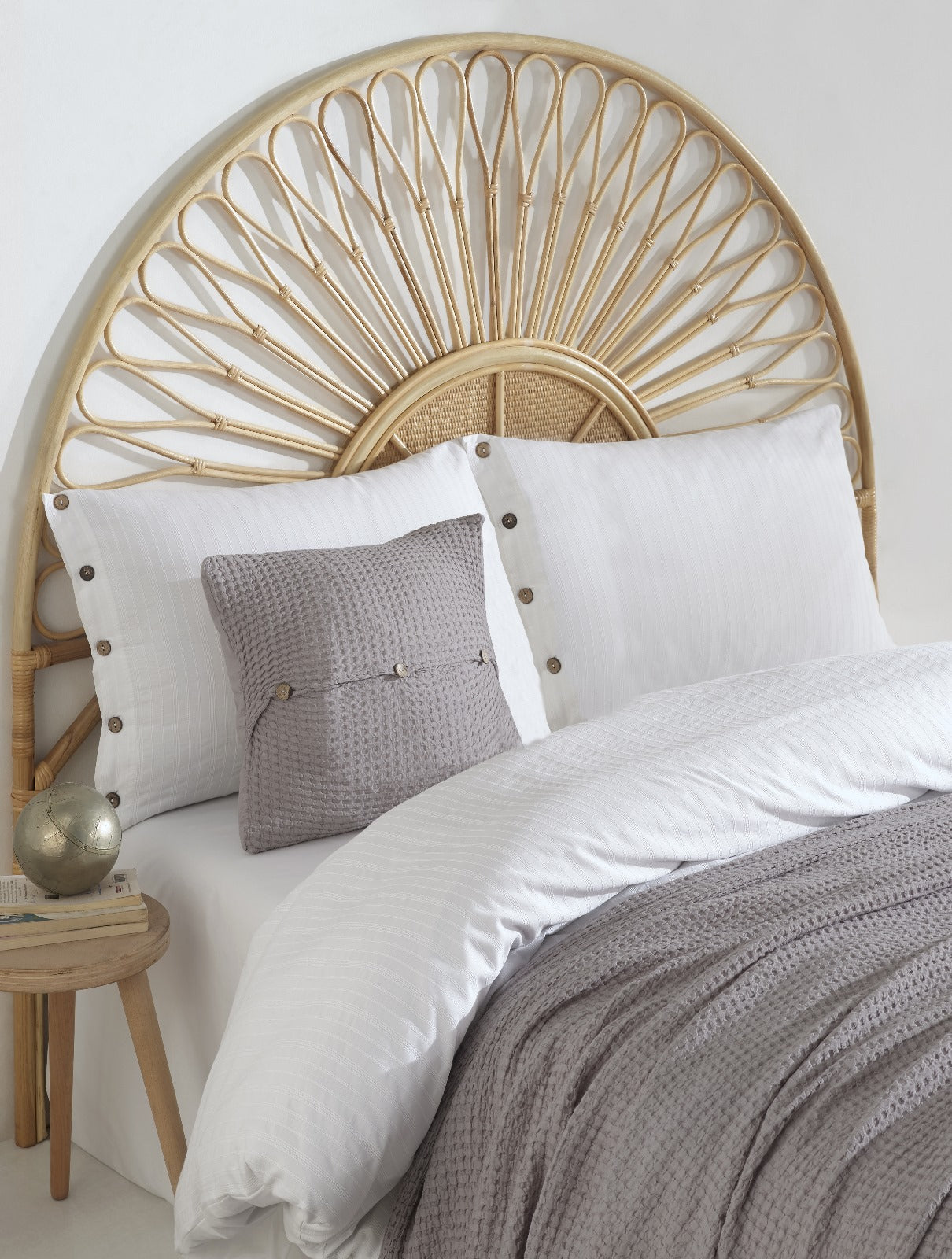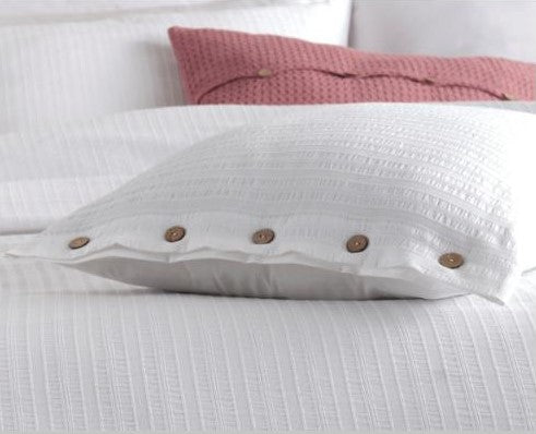 The Como Bianco Duvet Cover Set is crafted from 100% cotton sateen, woven for subtle sheen and long-lasting softness. Designed for those who seek elegance in restraint, this set brings quiet luxury to your bedroom with its textured stripe pattern and natural wood button closure.