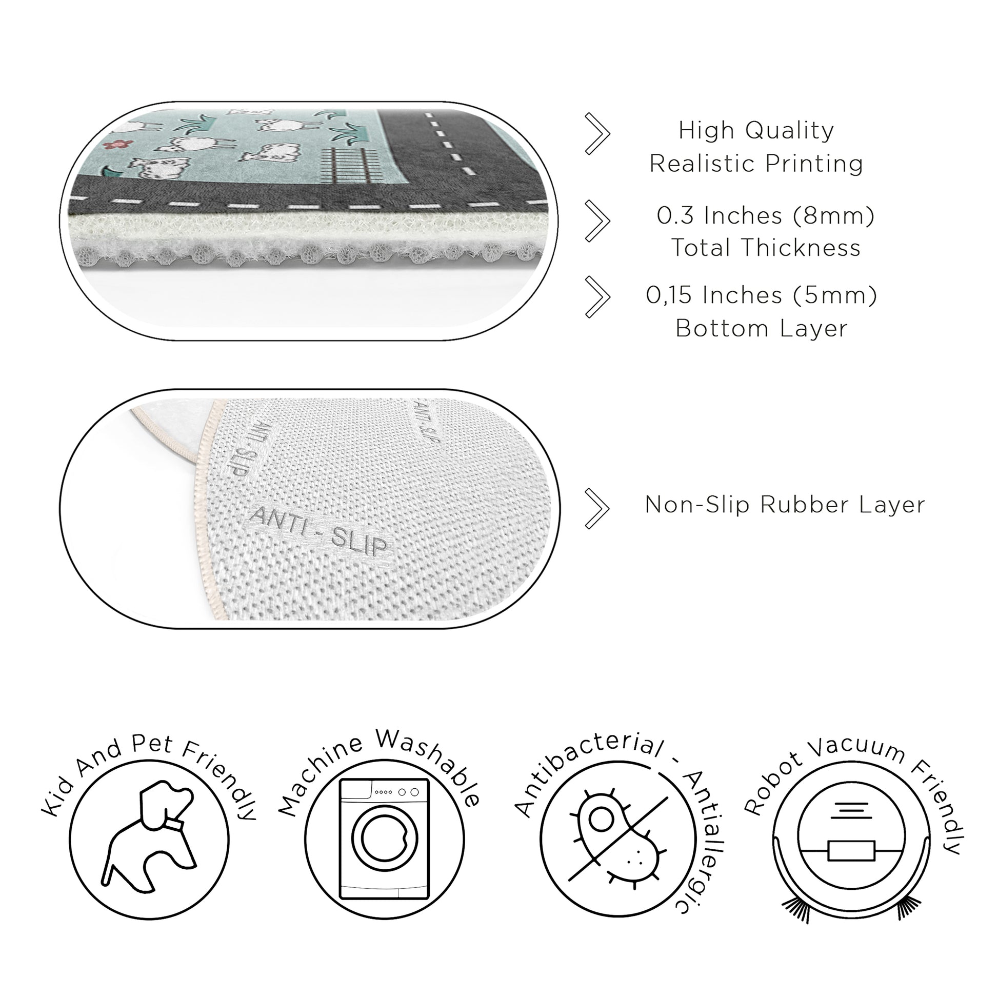 - Anti-Slip Backing: Designed with your child’s safety in mind, the rugs feature a durable anti-slip backing, preventing slips and falls, even on smooth surfaces.