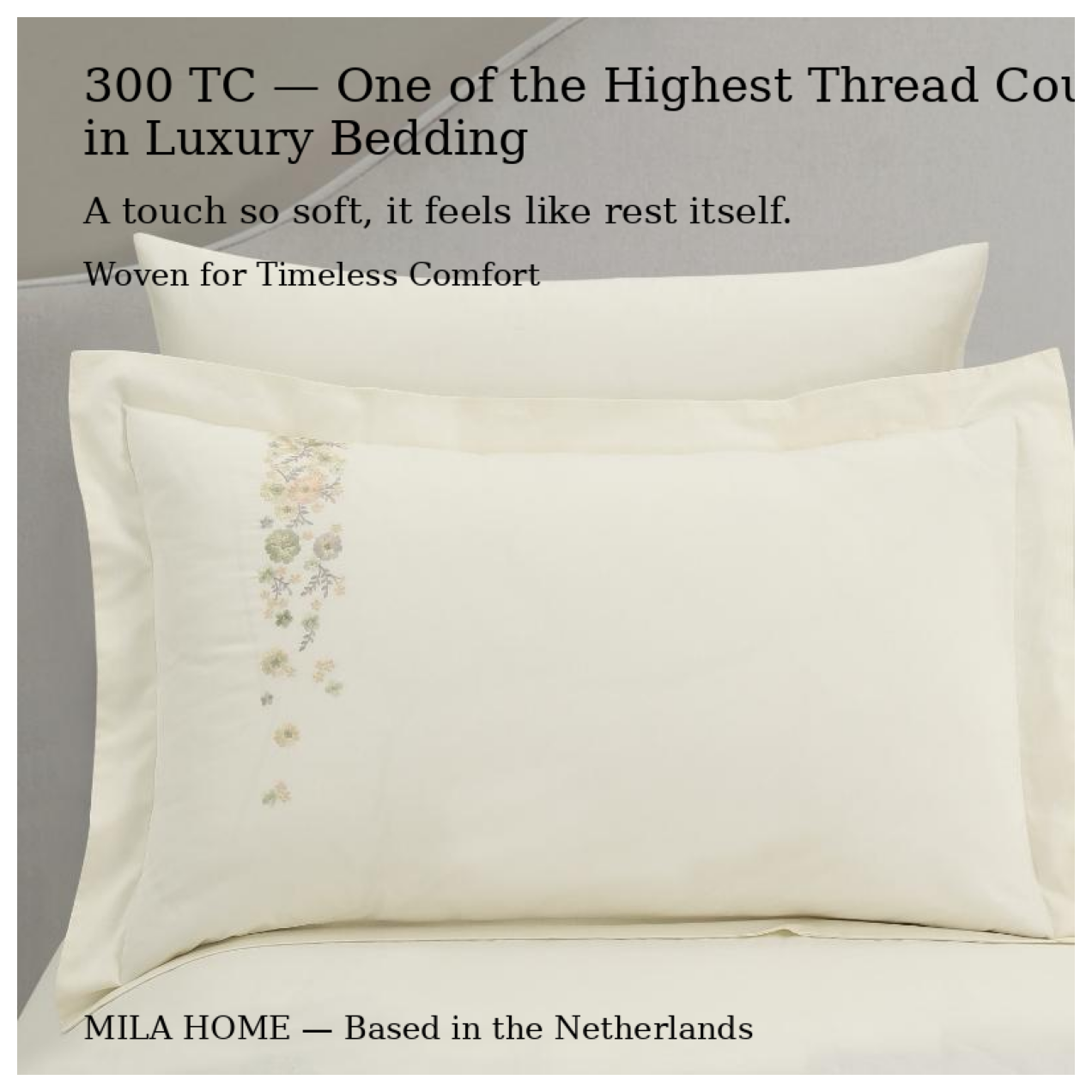 Crafted for timeless luxury and serene comfort, our BloomEdition from the Hotel Collection transforms your bedroom into a haven of tranquility and elegance. Featuring an exceptional 300 Thread Count, this bedding set offers optimal softness and durability—far surpassing standard bed linens—ensuring the luxurious sleep experience found only in the finest hotels.