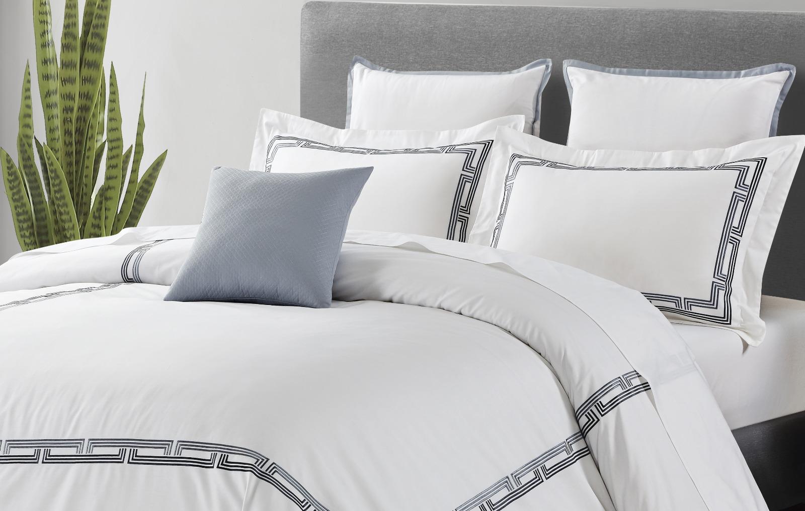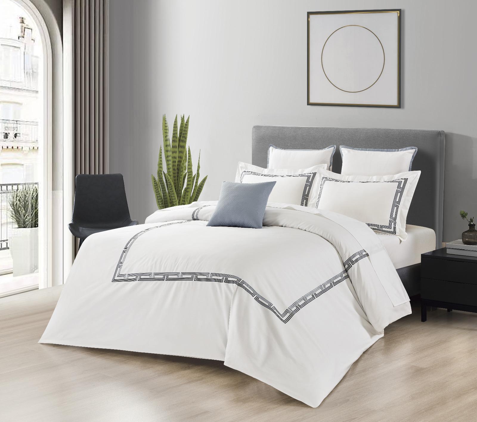 Hotel Collection – Architect Edition | Luxury Cloud White Bedding Set with Geometric Embroidery – 300 Thread Count Premium Cotton – 6-Piece Duvet Cover Set