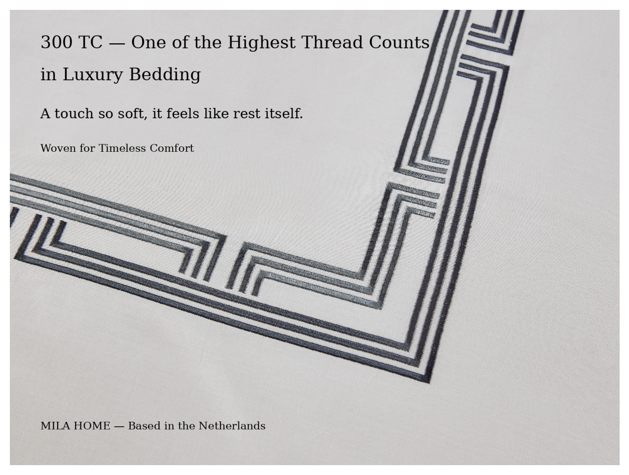 Subtly adorned with refined geometric embroidery, each piece embodies sophisticated minimalism, designed to complement any interior seamlessly. Made from 100% Premium Cotton, renowned for its breathability, sustainability, and gentle texture, this set promotes better sleep quality and relaxation night after night.