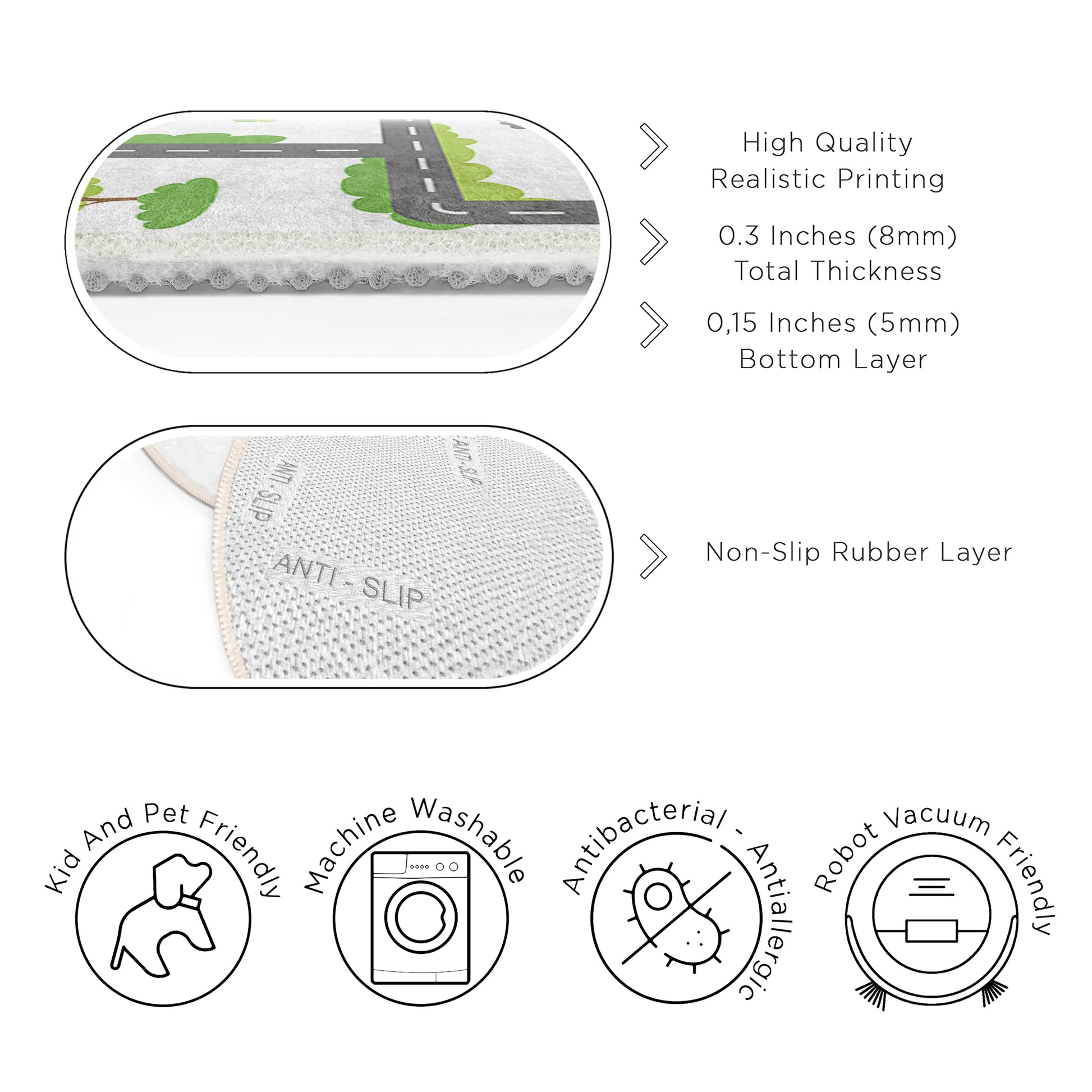 - Anti-Slip Backing: Designed with your child’s safety in mind, the rugs feature a durable anti-slip backing, preventing slips and falls, even on smooth surfaces.