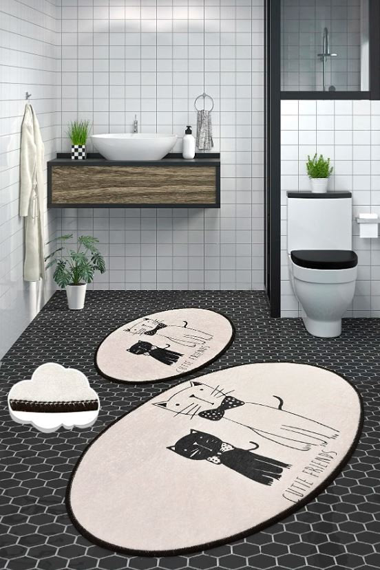 Luxury Set of 2 Modern Cute Cat Pattern Bath Mat Anti-Slip Bathmat Stylish Non Slip Shower Mat Non Slip Bathroom Rugs Decorative Bath Rug