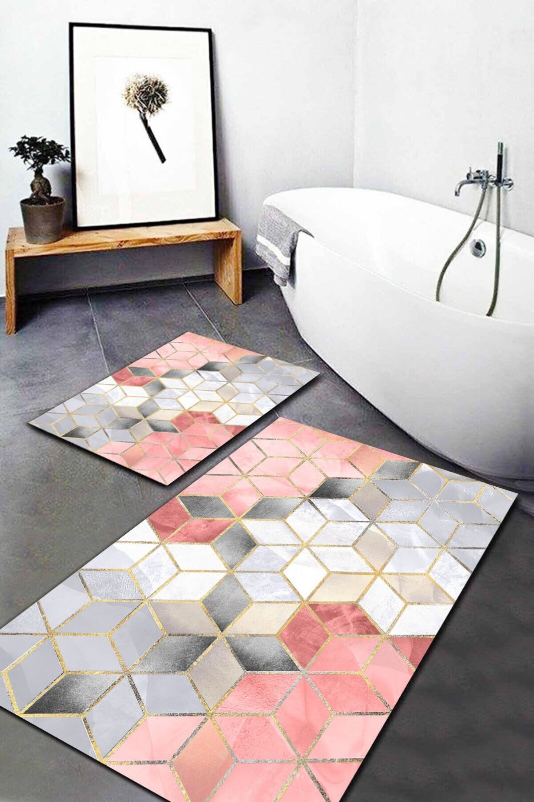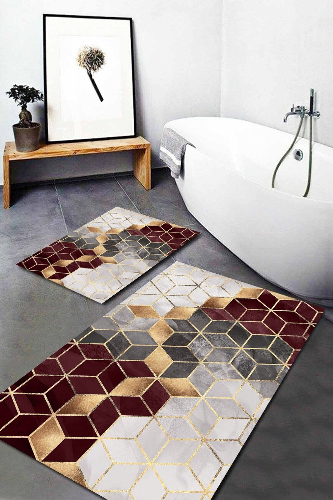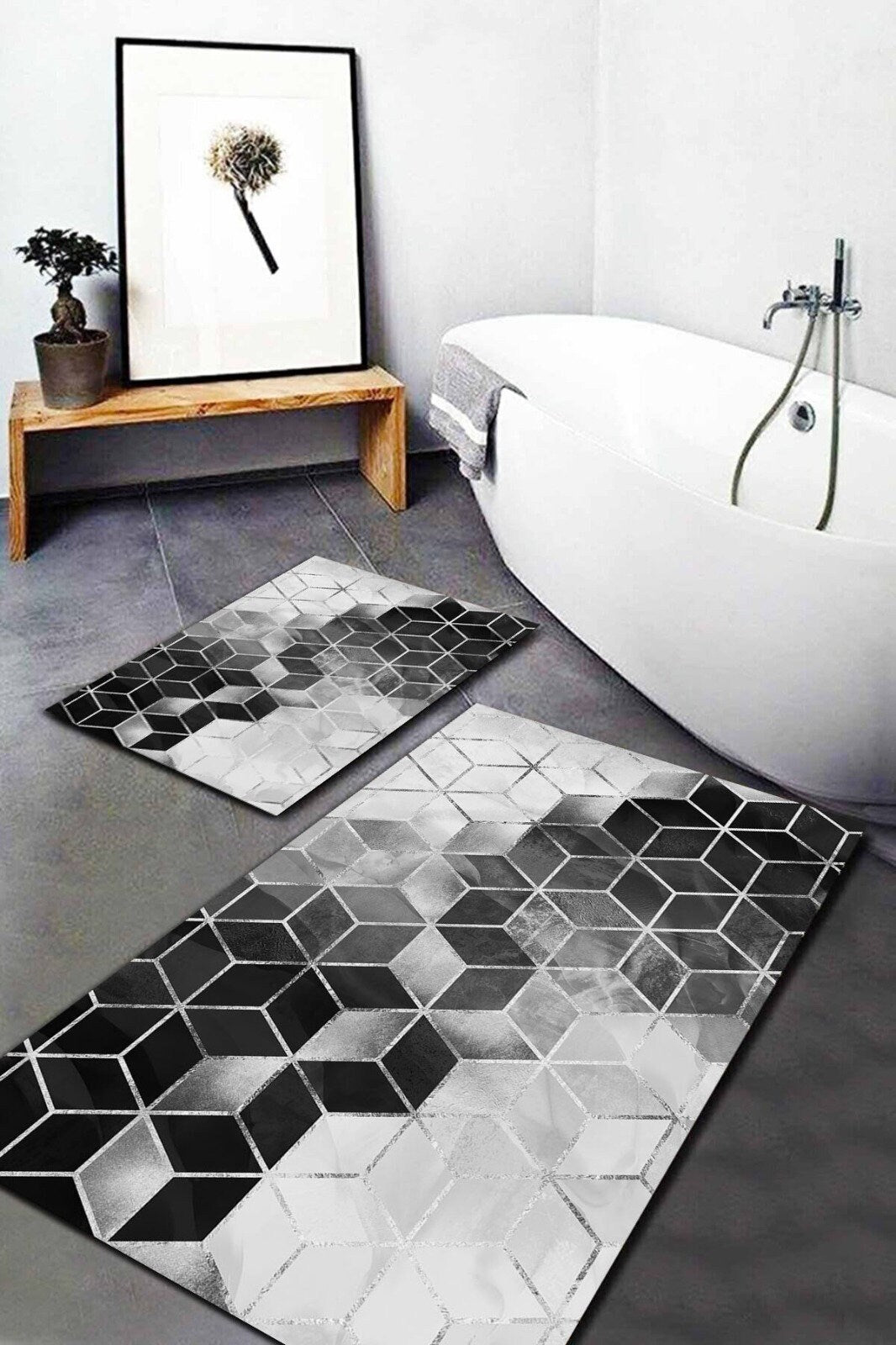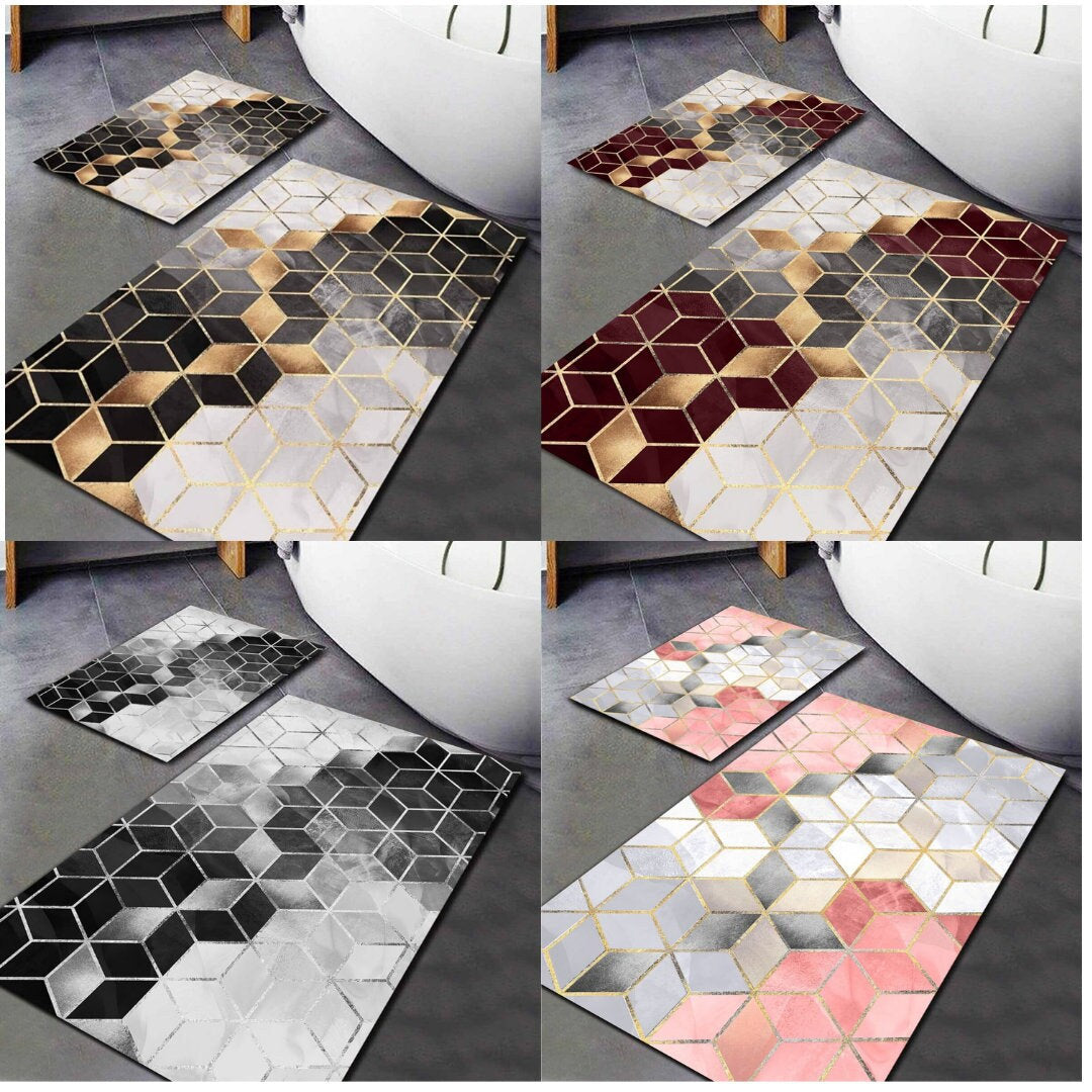 Luxury Set of 2 Modern Optic Bath Mat|Anti-Slip Bathmat| Stylish Non Slip Shower Mat| Non Slip Bathroom Rugs|Decorative Bath Rug|Floor Mat