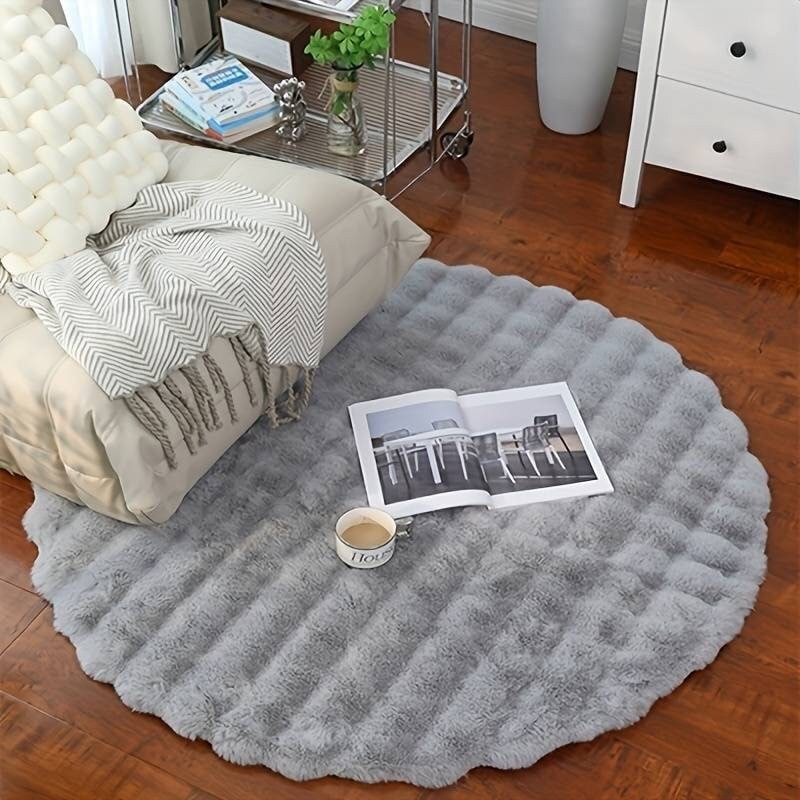 Modern Round Luxury Plush Soft Area Rug - Bubble Rug Fleece - Elegant Faux Rabbit Fur Softest Carpet for All Rooms | Best Seller | Washable