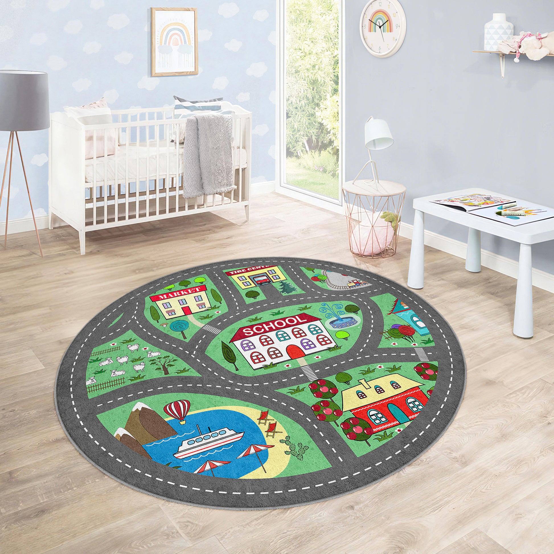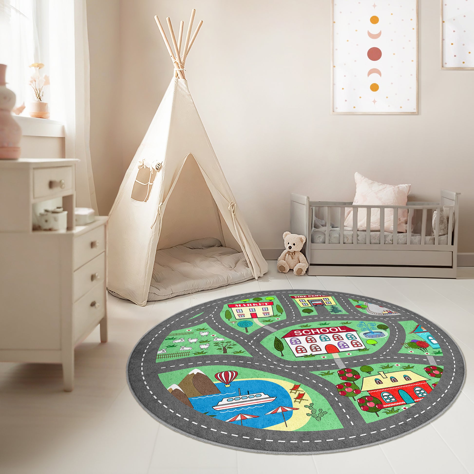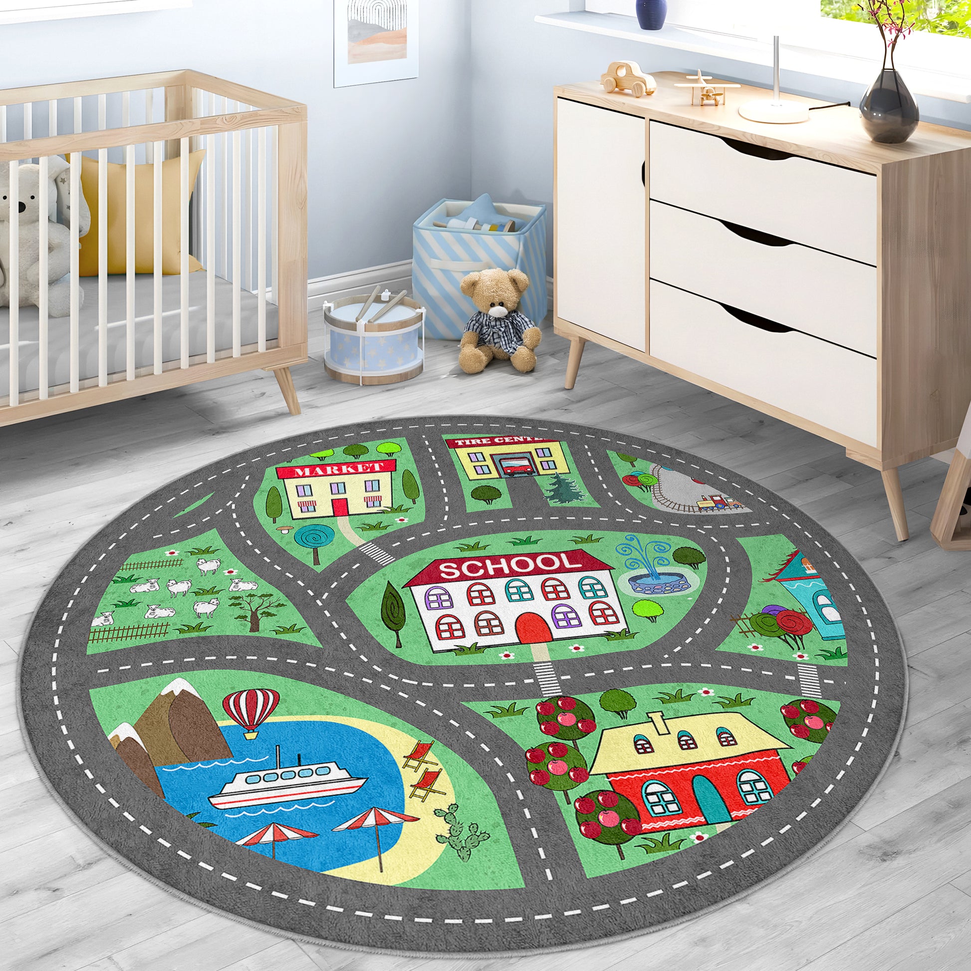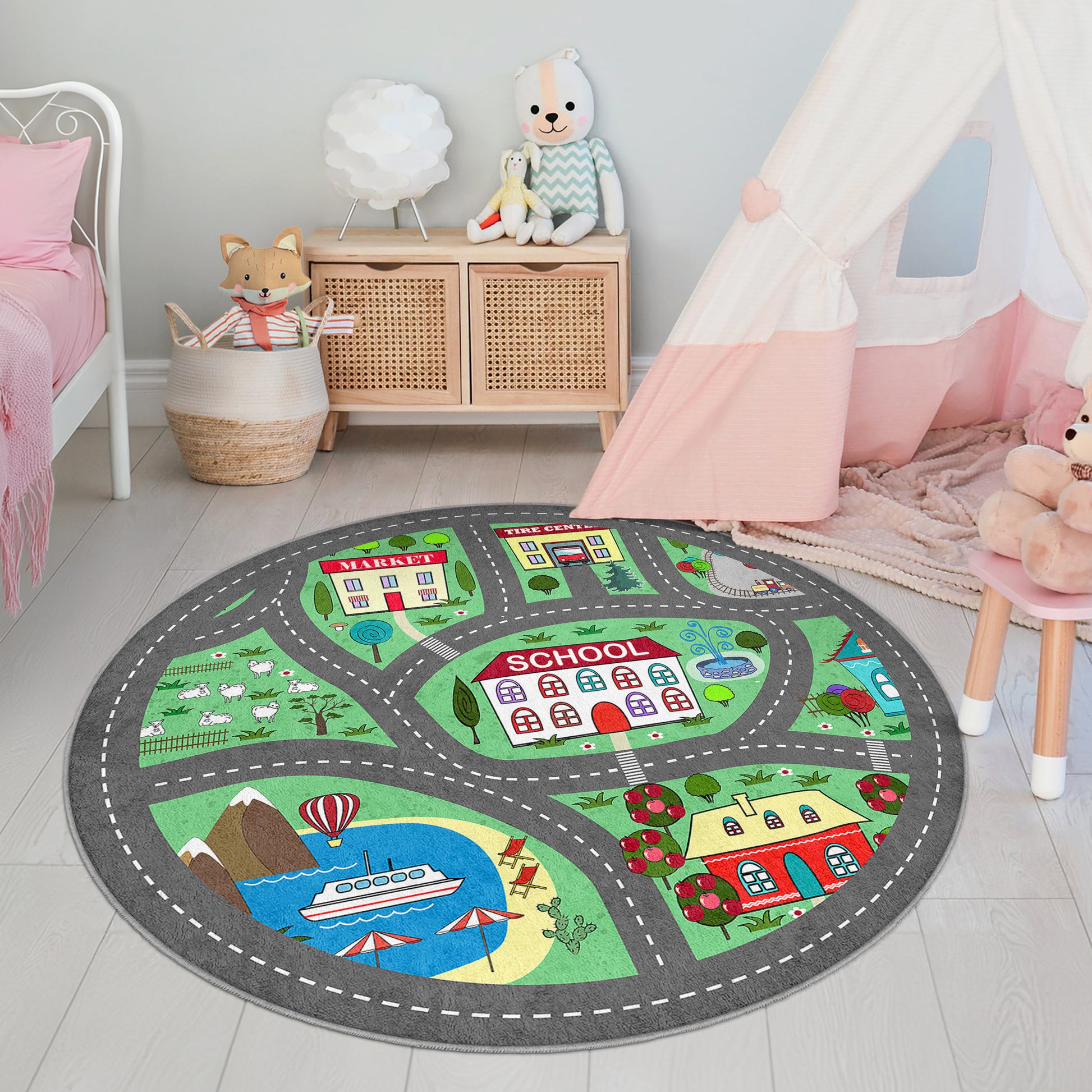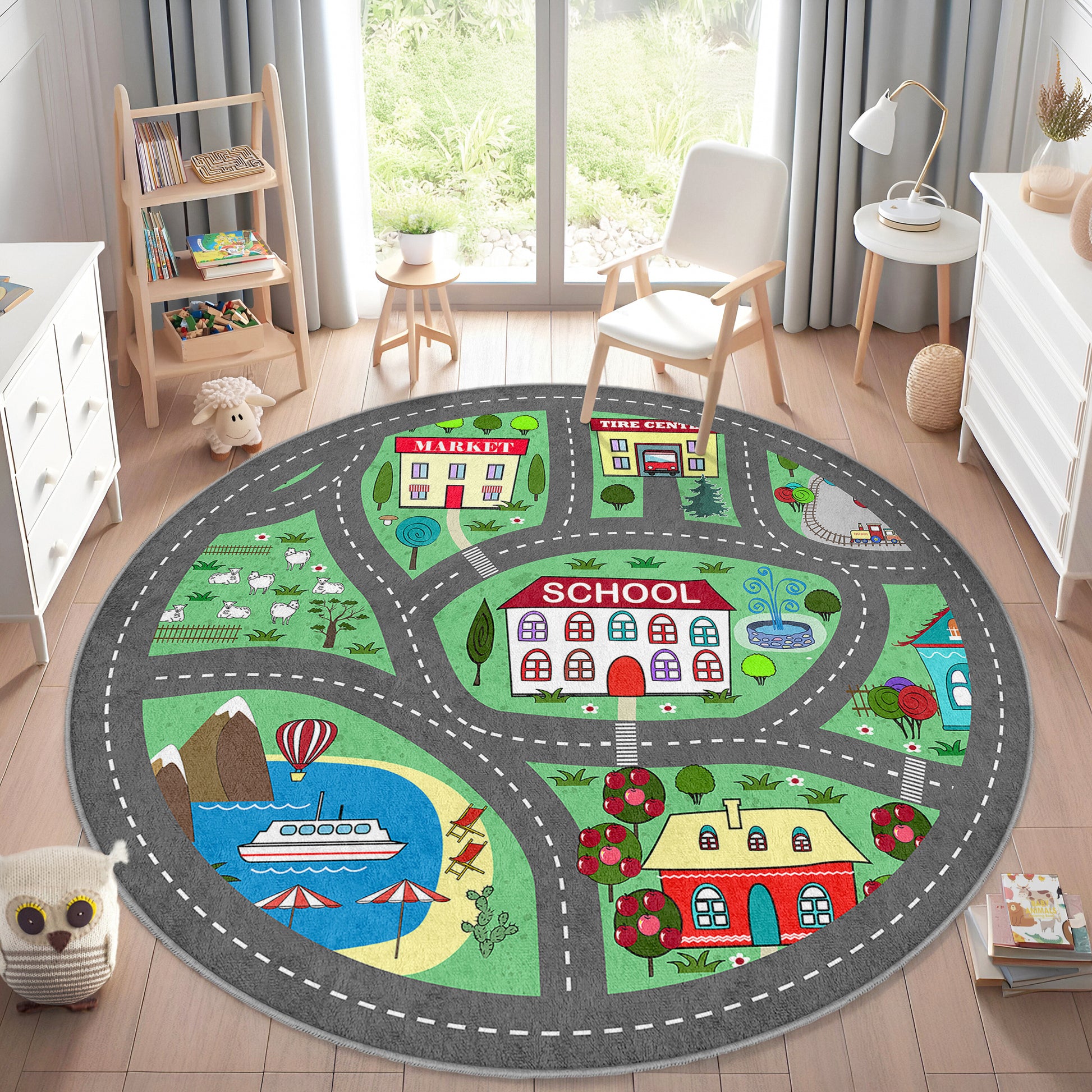 Car Road to School Navy Design Washable Anti-Slip Kids Rug Multifunction as Non Slip Play Mat - Perfect for Bedrooms, Playrooms & Nurseries - Durable, Safe, & Easy to Clean for Boys & Girls 309