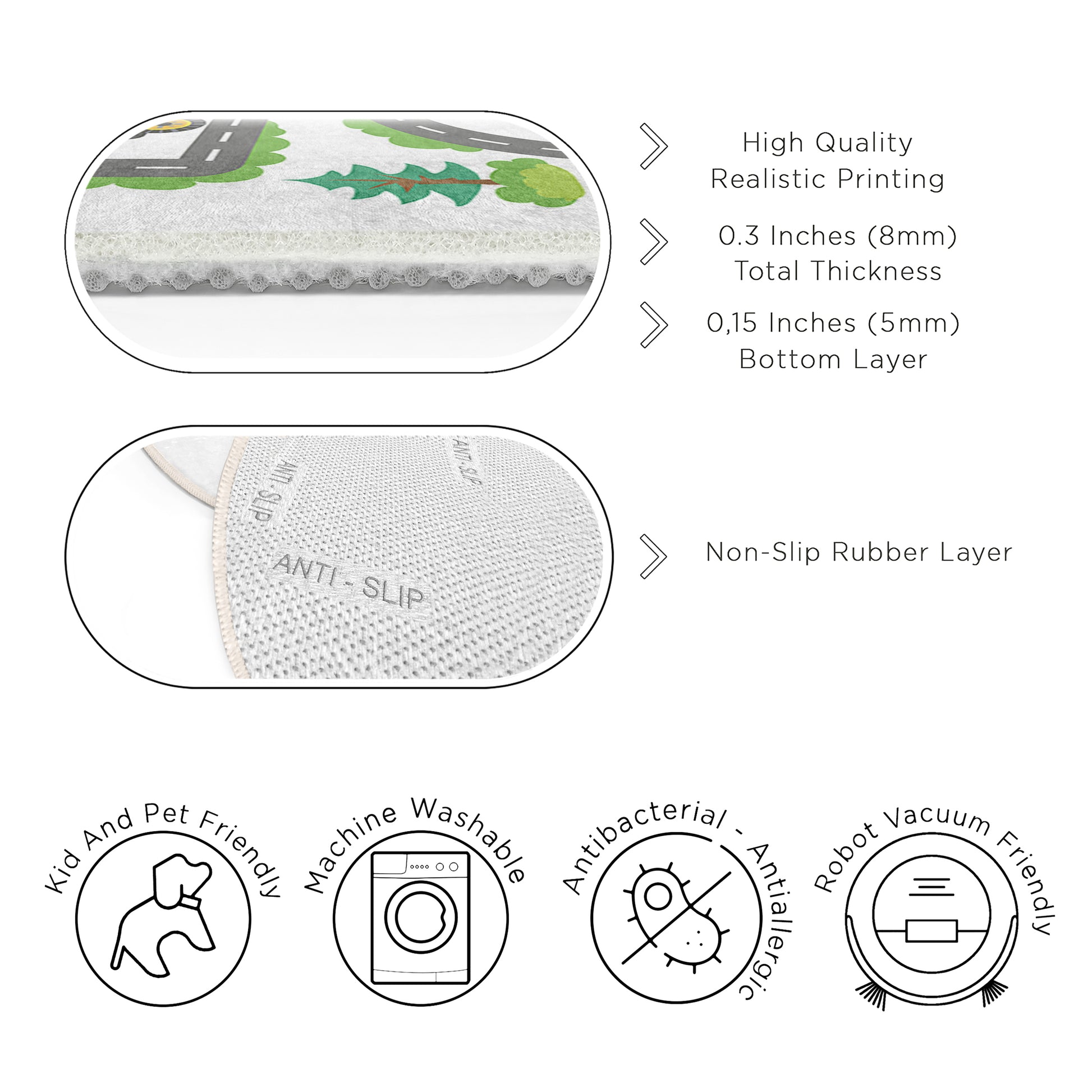 - Anti-Slip Backing: Designed with your child’s safety in mind, the rugs feature a durable anti-slip backing, preventing slips and falls, even on smooth surfaces.