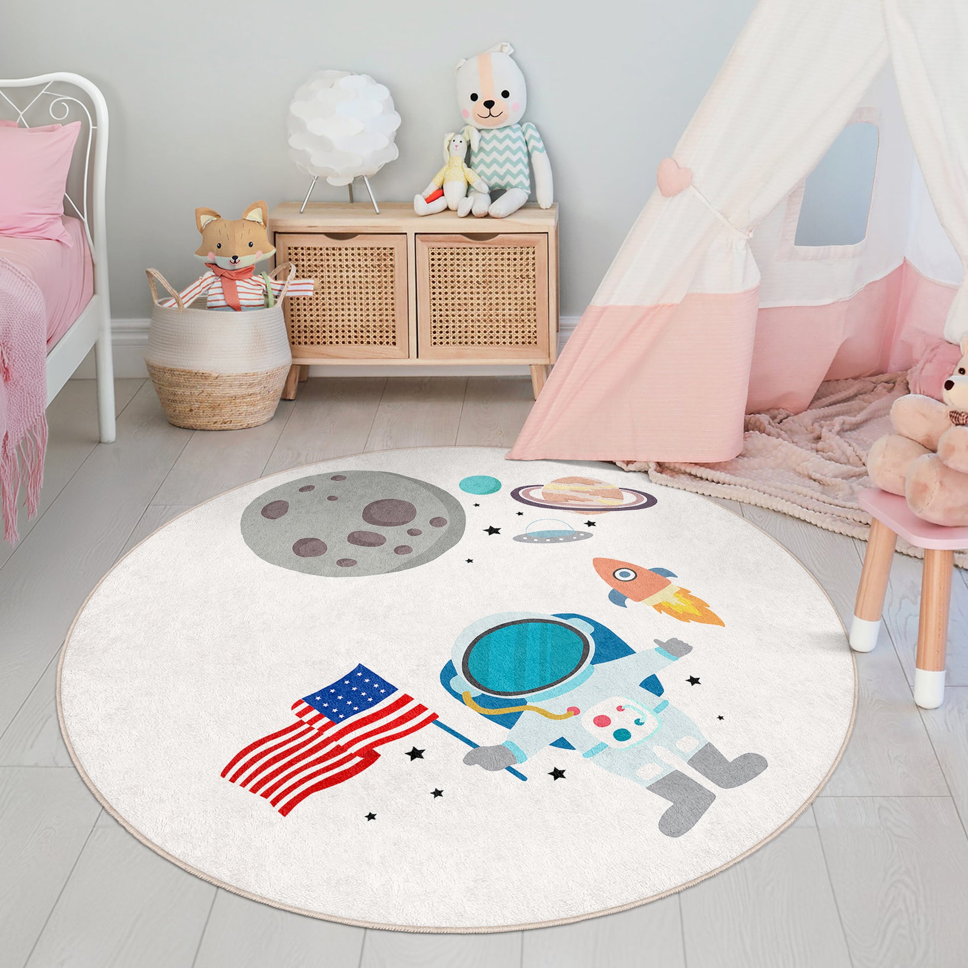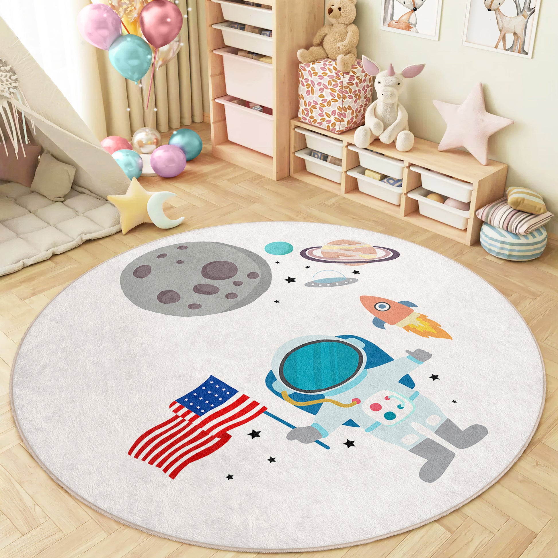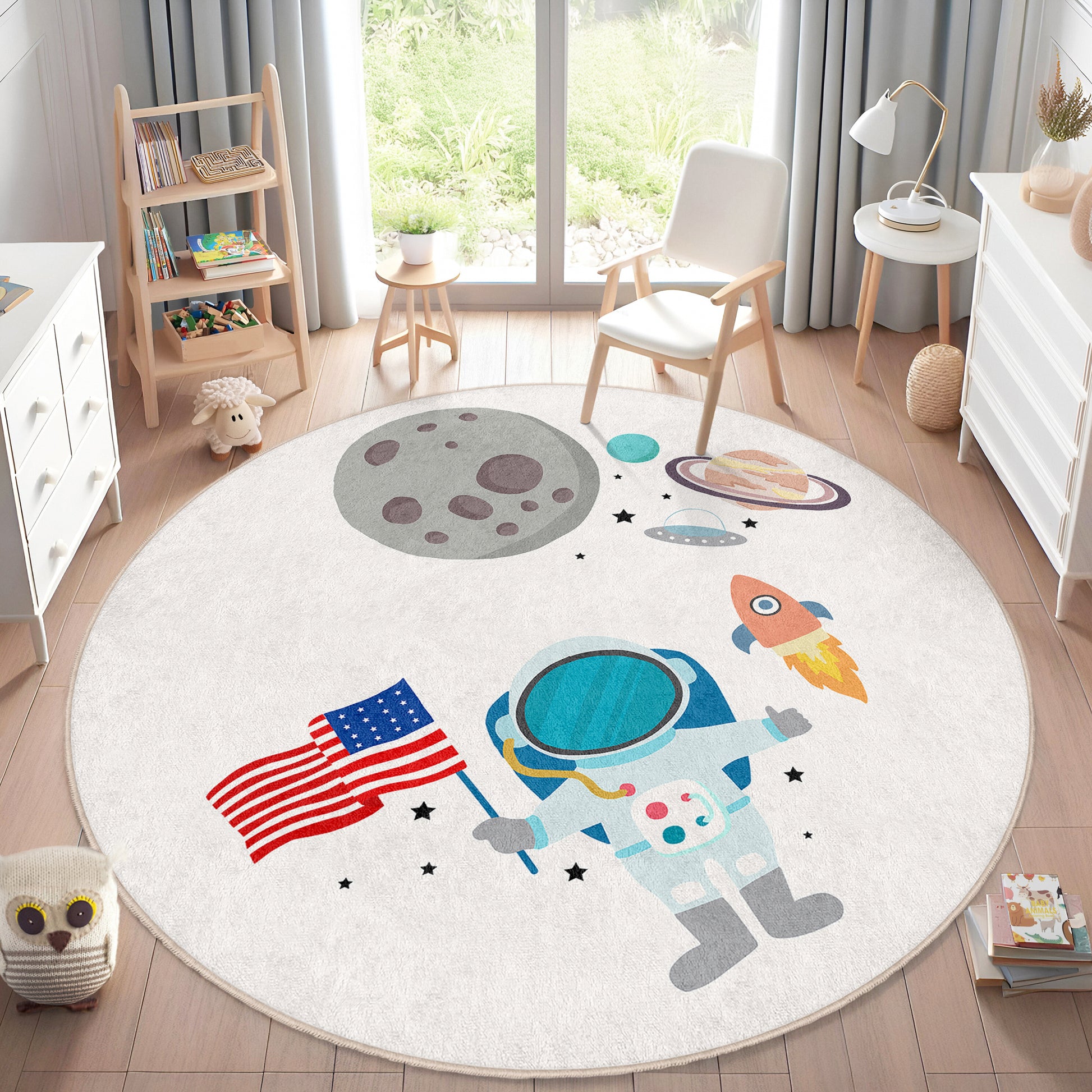 Planets on Milky Way Design Washable Anti-Slip Kids Round Rug Multifunction as Non Slip Play Mat - Perfect for Bedrooms, Playrooms & Nurseries - Durable, Safe, & Easy to Clean for Boys & Girls Room 336