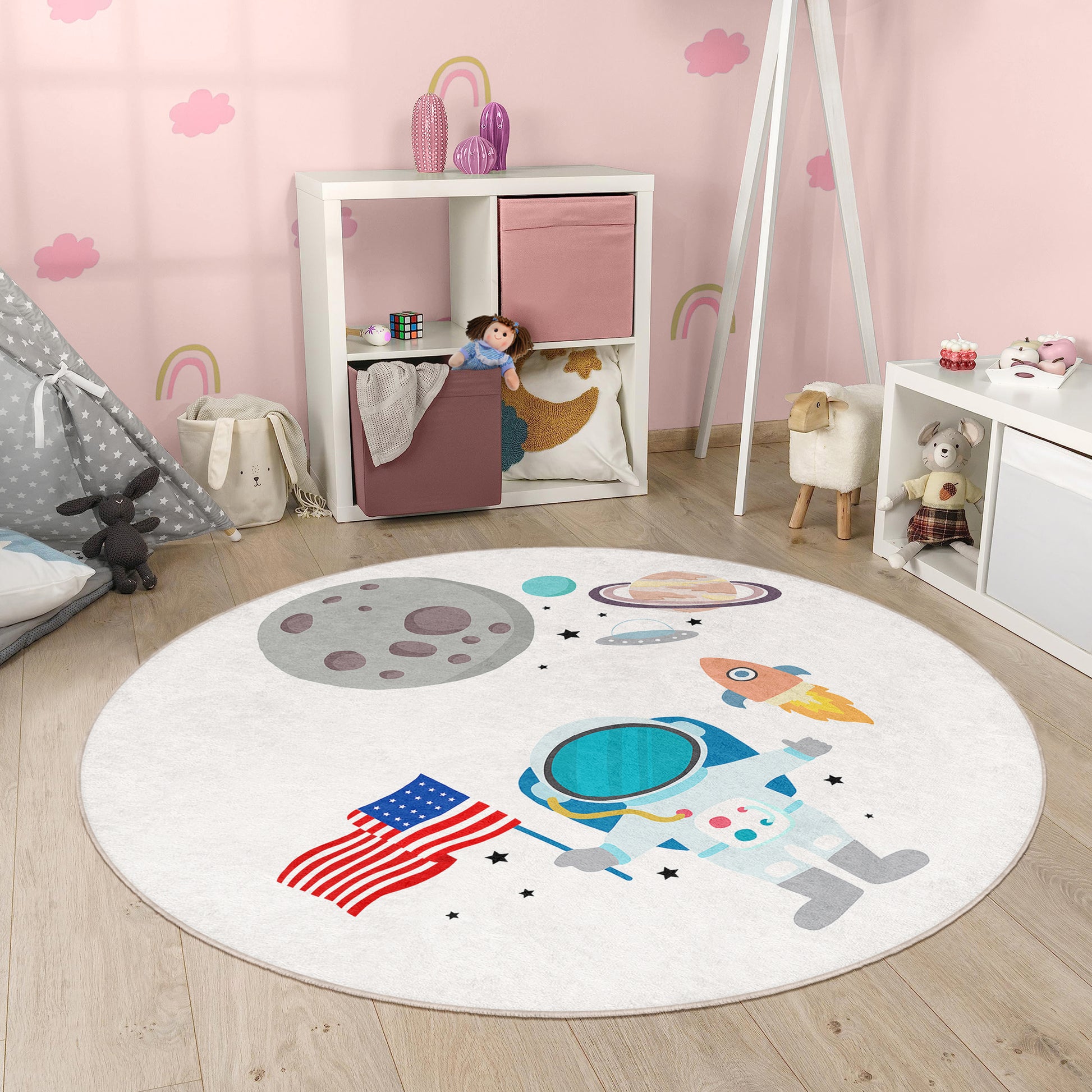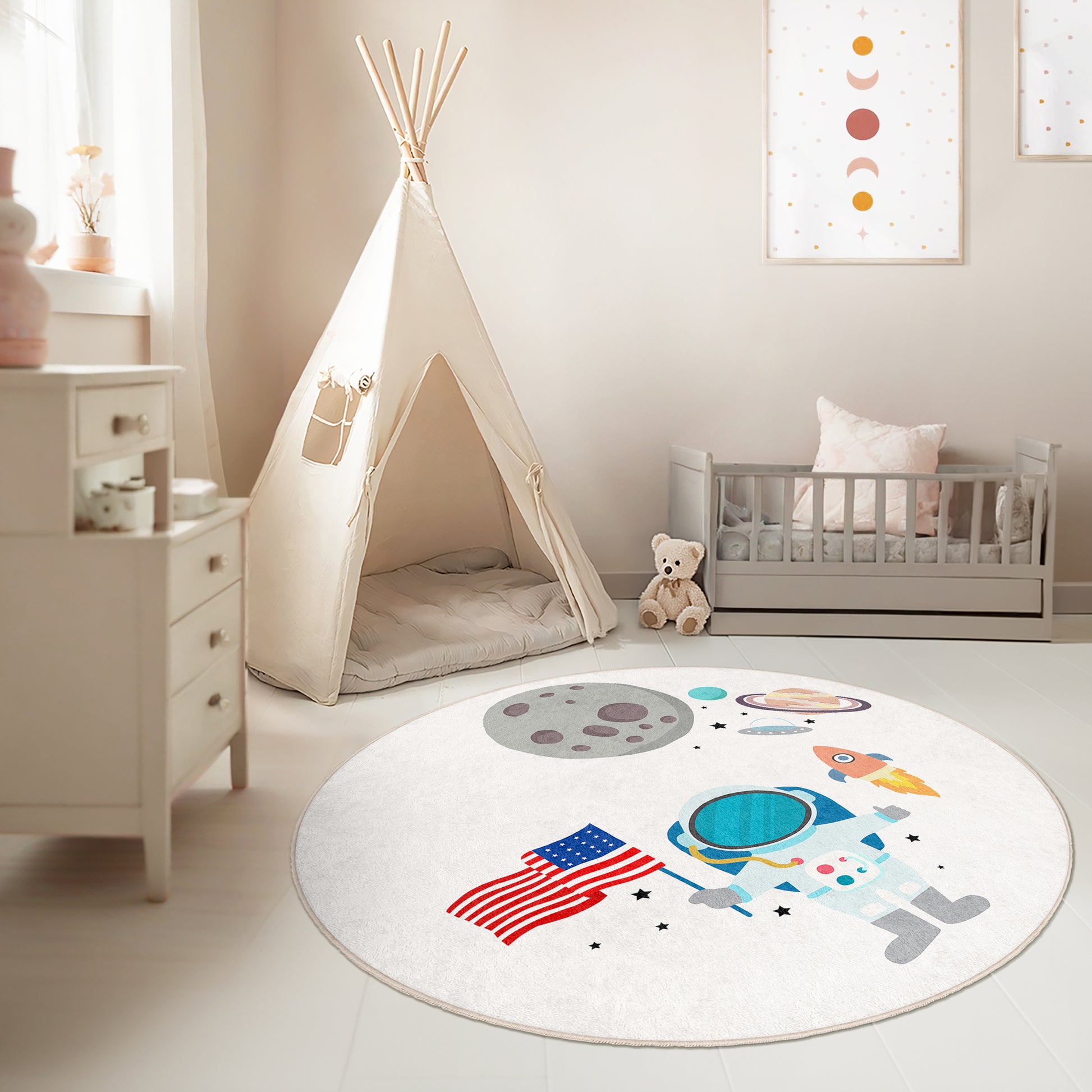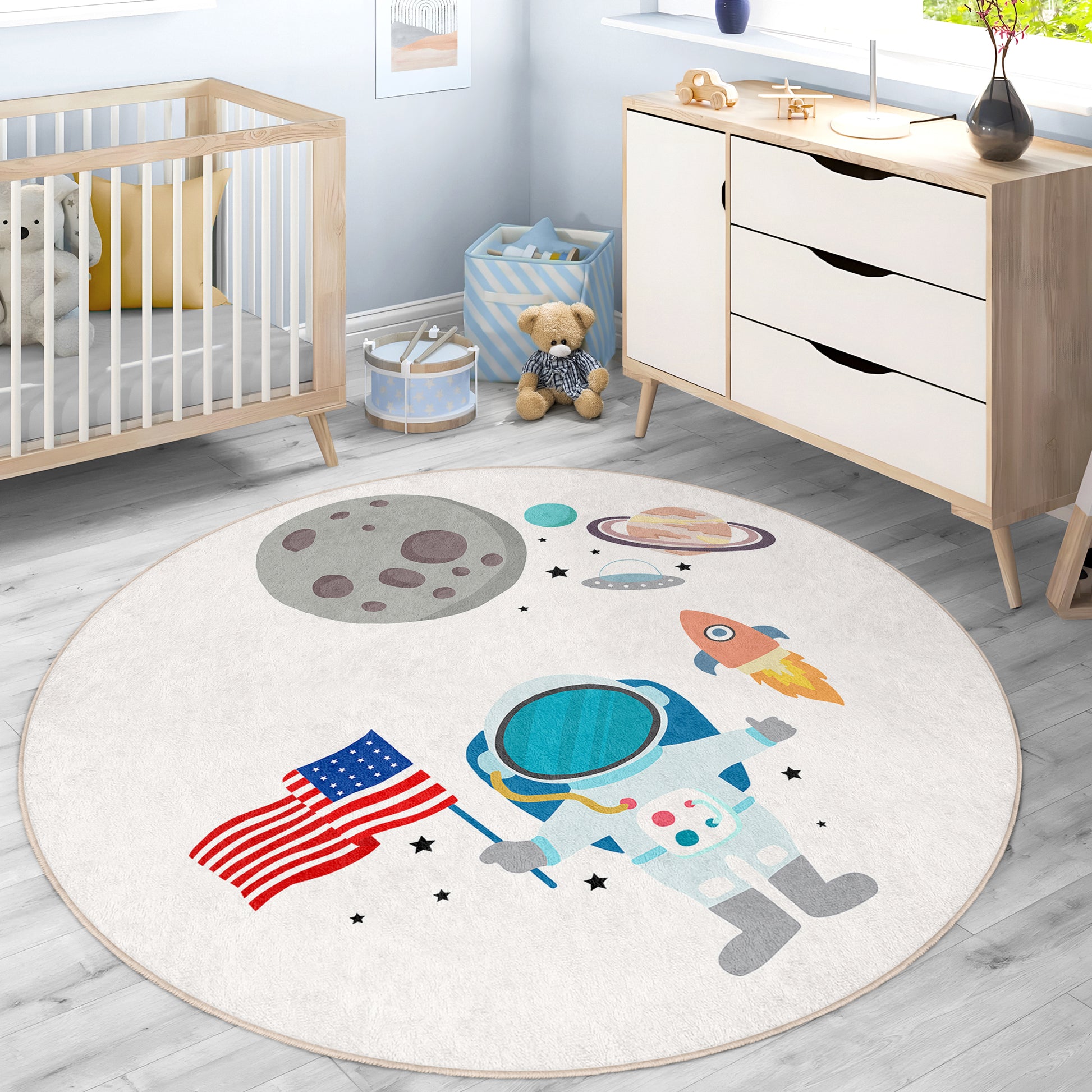 Planets on Milky Way Design Washable Anti-Slip Kids Round Rug Multifunction as Non Slip Play Mat - Perfect for Bedrooms, Playrooms & Nurseries - Durable, Safe, & Easy to Clean for Boys & Girls Room 336