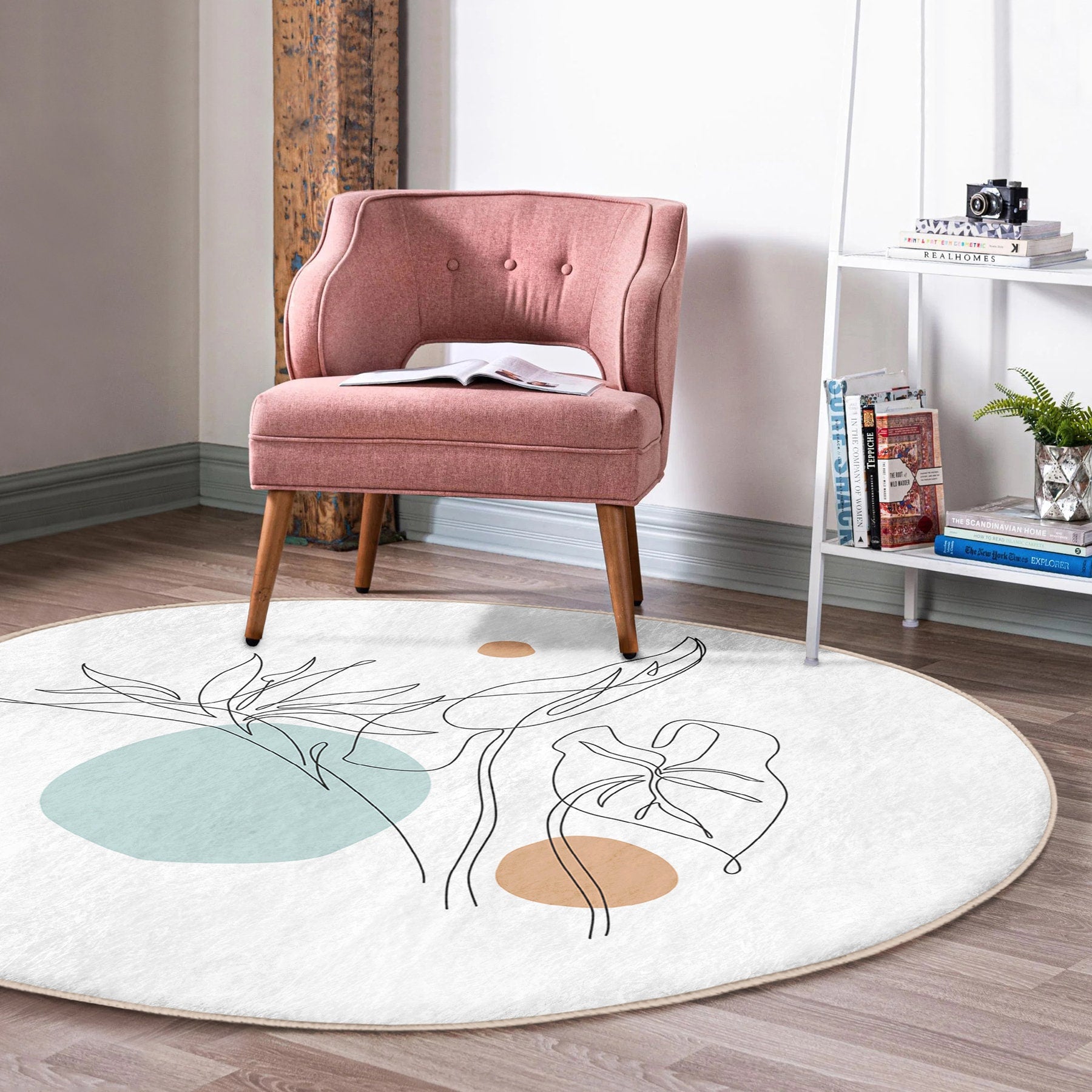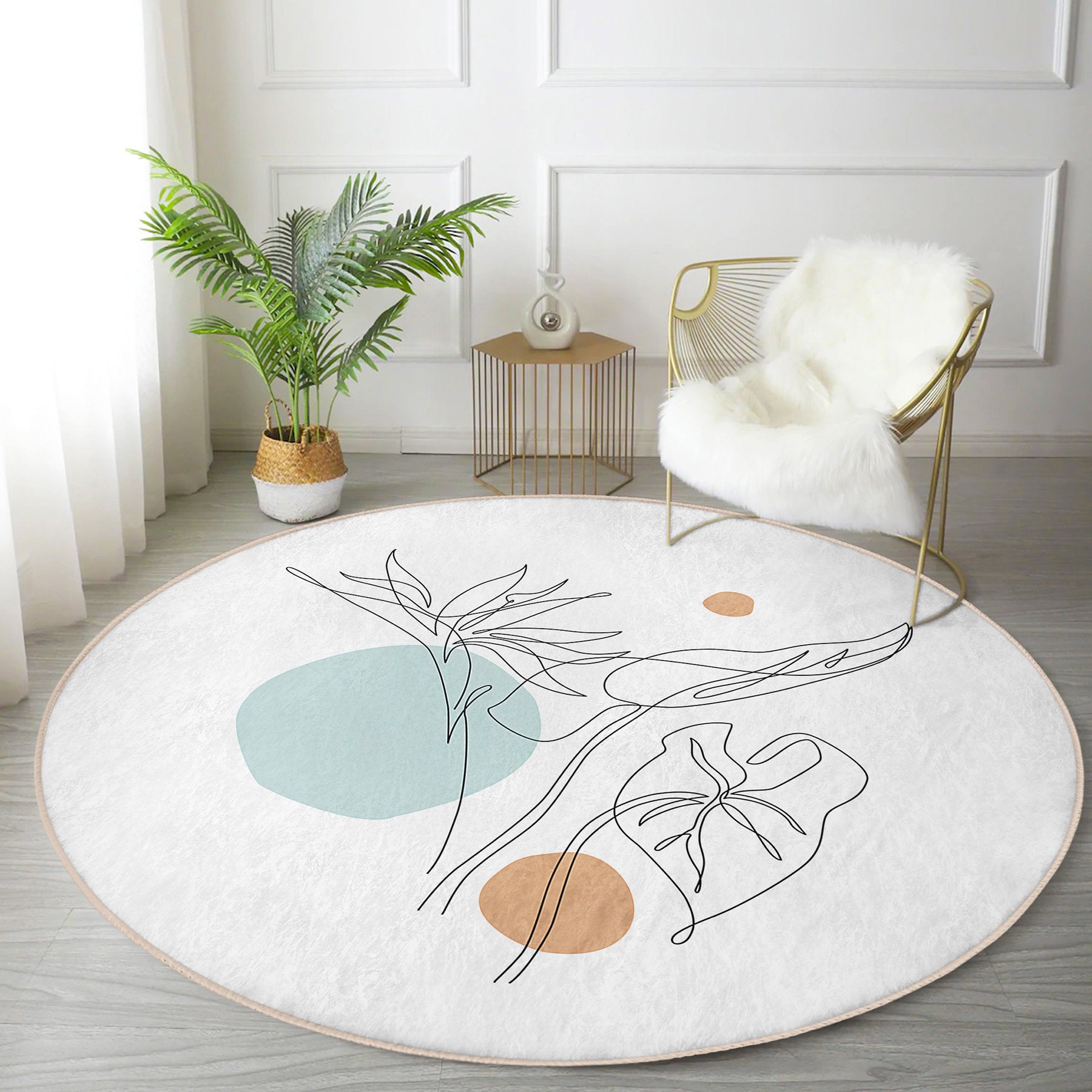 Round Pastel Drawing Rug, Minimal Abstract Design, Non-Slip Base, Drawing Pattern - Living Room, Bedroom Draw Art, Rug, Carpet for Home