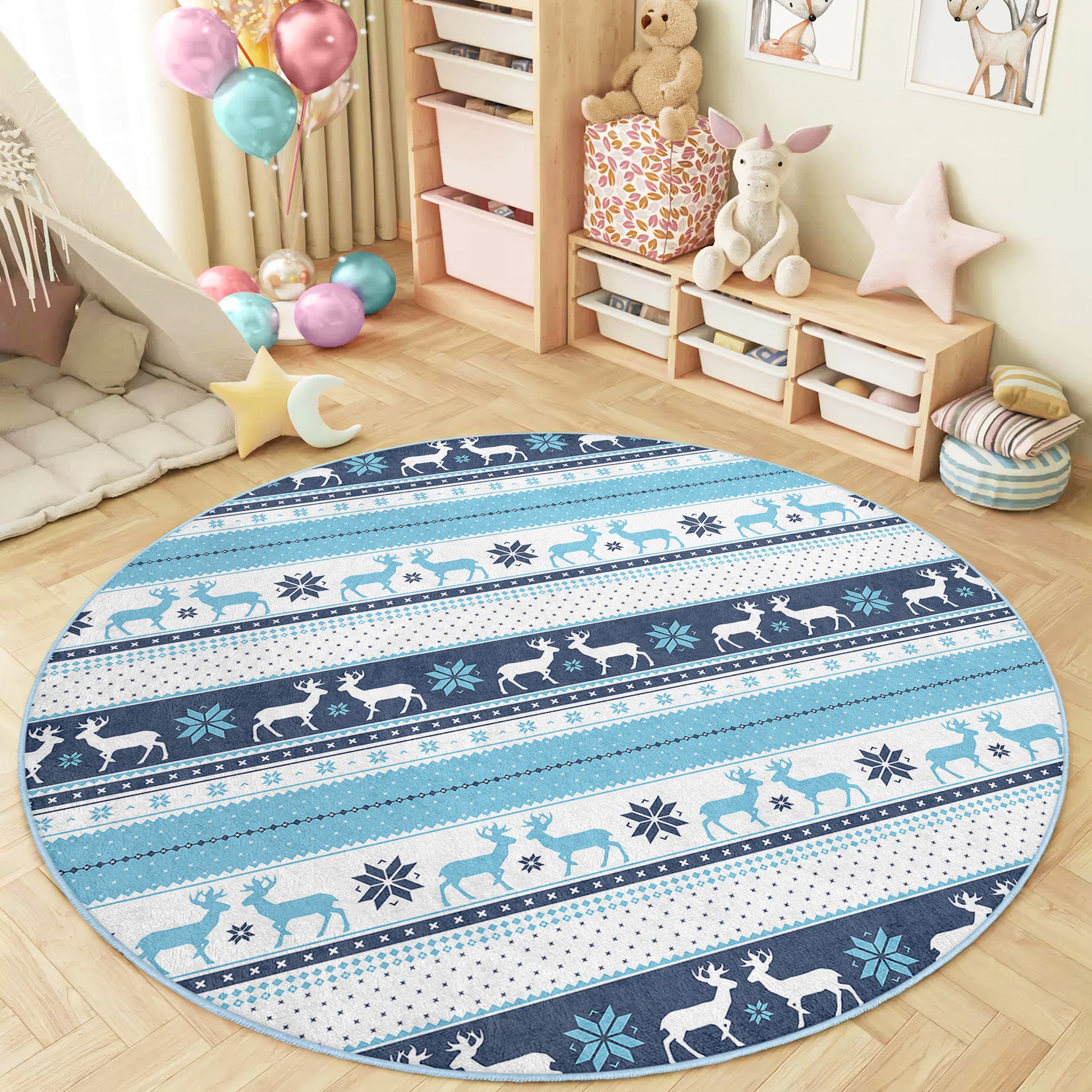 Deer Design Washable Anti-Slip Kids Rug Multifunction as Non Slip Play Mat - Perfect for Bedrooms, Playrooms & Nurseries - Durable, Safe, & Easy to Clean for Boys & Girls